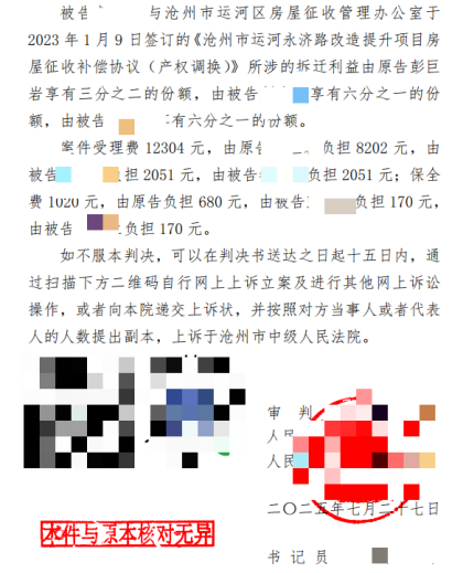 与此同时,彭某岩另行提起民事诉讼,请求确认拆迁补偿利益的三分之二归其所有。2025年7月,沧州市运河区法院一审判决,认定拆迁利益为彭某岩与王某霞的共同财产,王某霞所占份额按法定继承分配,判决彭某岩享有三分之二份额,彭某金与王某霞之母都某兰各享有六分之一份额。彭某金不服一审民事判决,提起上诉。