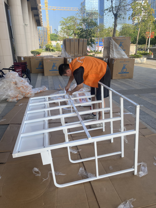 为应对高频使用场景,腾悦建立 "智能监测 - 快速响应 - 深度养护" 三级运维体系。设备搭载智能传感器实时监测状态,故障自动预警后,运维人员 30 分钟内响应、2 小时内修复,北京某三甲医院数据显示,设备完好率稳定在 99.2%,核心部件故障率低于 0.8%。材料创新方面,采用航空级铝合金框架(重量仅 9.8 公斤)和抗菌涂层坐垫,经第三方检测,可承受 10 万次折叠无结构变形,在三甲医院 "日均 9 次使用" 强度下,使用寿命达 6 年,是普通轮椅的 2.1 倍。卫生安全上,实施 "一用一消毒 + 每周深度清洁",武汉某医院检测显示,共享轮椅表面菌落数较传统租赁轮椅降低 68%。