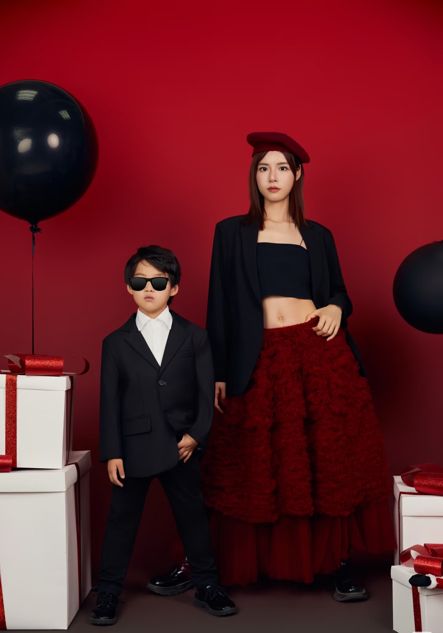 母子俩站在一起实在是太酷了,廖语辰把儿子养得可太好了。