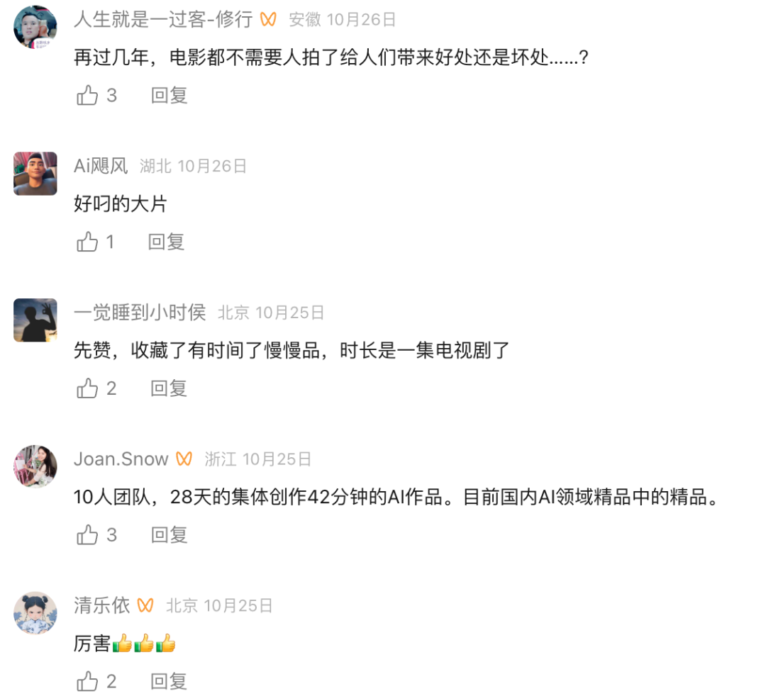 一开始大家都想玩流量,但很快就发现,流量型AI短片的同质化问题非常严重。一个视频风格火了之后,会迅速被模仿、被复制、被搬运,没办法持续做一些东西。