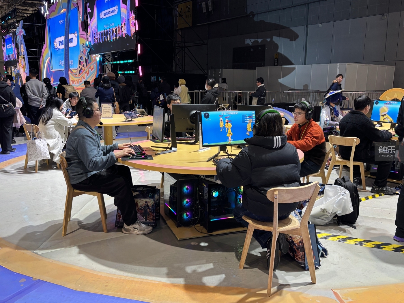 “我刚刚都听到他们在讨论‘怎么消除玩家的挫败感’了。”我在这里见到了宗王晓艺,他看起来有些兴奋,也有点紧张,“感觉他们都好厉害,讨论的话题非常专业……”他告诉我,昨天,他还参加了《原神》今年的FES,在现场Cos成阿贝多,还特意给另一位创作者“快过时间”献了花。