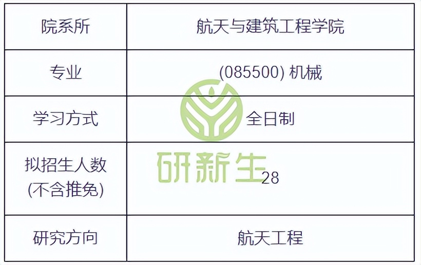 机械专硕是天津工业大学强势学科,有多个院校招生,下面展示的事航天与建筑工程学院,全日制拟招28人,研究方向是航天工程。