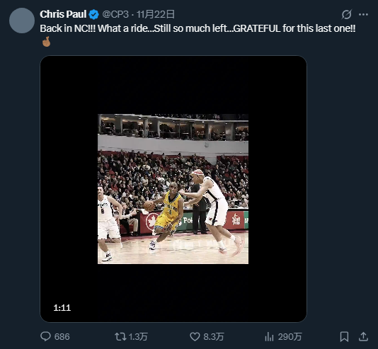 克里斯·保罗已在社交媒体上暗示,他这段注定进入名人堂的 NBA 生涯即将画上句号——历时 21 个赛季。在洛杉矶快船前往北卡罗来纳州客战夏洛特黄蜂之前,保罗发布了一段视频,并写下:“很感恩这最后一个赛季!!”