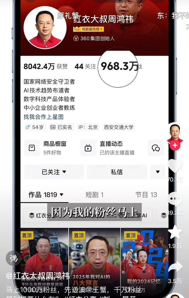 哎,最近互联网真是热闹非凡!周鸿祎大佬说要送车给粉丝,这消息一出,粉丝直接暴涨一百多万!这速度,简直比火箭还快!话说,这
