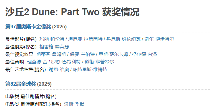 影片拿下了第97届奥斯卡最佳音响一奖,是实至名归的。