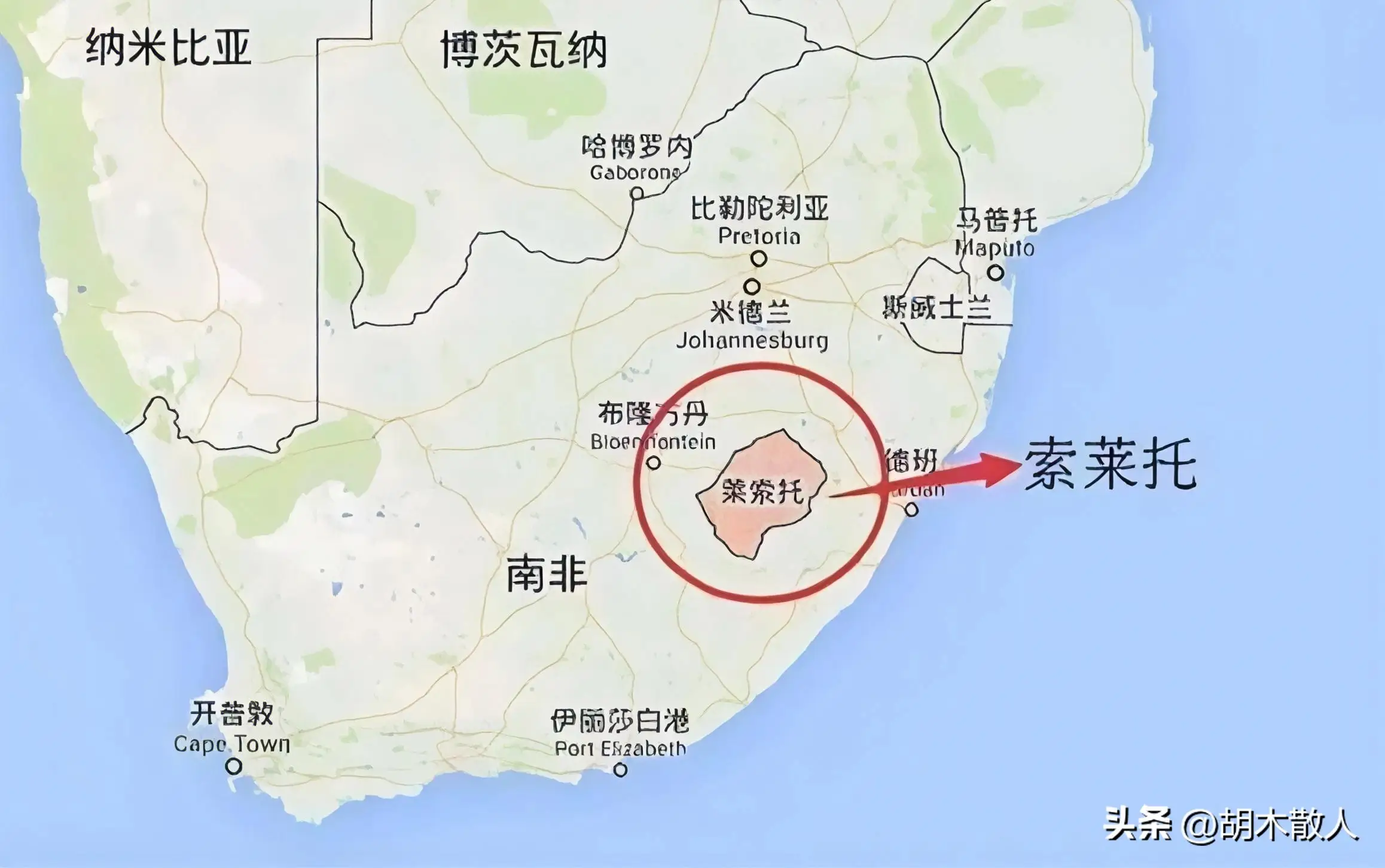 莱索托:当年和布尔人争夺南非开片时,英国人把高地索托族用一圈篱笆围起来,不当地人让下山掺活,后来南非独立,莱索托就成了“嵌在南非肚子里的麻雀王国”。