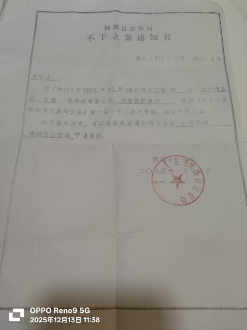 合同履行过程中,李中正因资金周转问题未能按时足额支付剩余承包费。经当地司法所协调,他出具书面保证书,承诺9月10日前交清款项,若未履行愿承担法律后果。但双方矛盾在10月突然升级,李中正称,10月初王广金派人拆除了其承包地上的蒙古包,10月20日至22日,又安排人员采收了12亩约5吨棉花(按当时市场价估算价值约3万元)。他多次拨打110报案,博湖县公安局刑侦大队和博斯腾湖派出所均以“经济纠纷”为由不予立案。