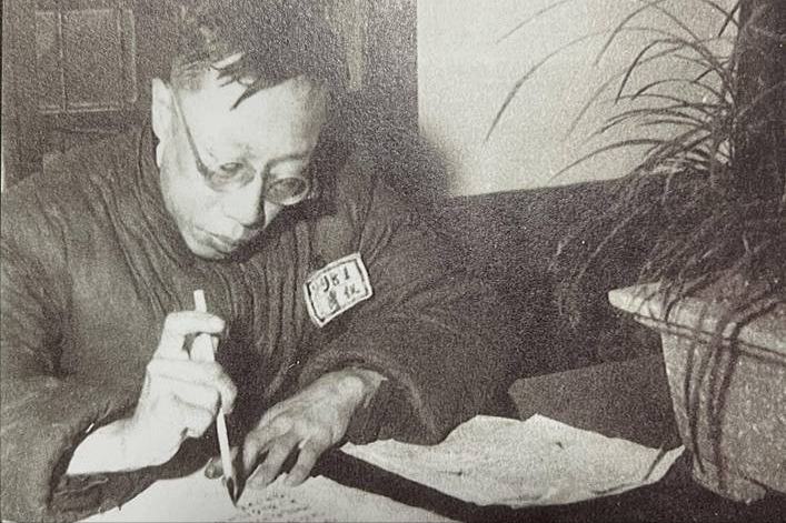 他穿着洗得泛白的旧呢大衣,袖口磨毛,裤脚被细细叠起,一双黑布鞋在地上悄然无声。