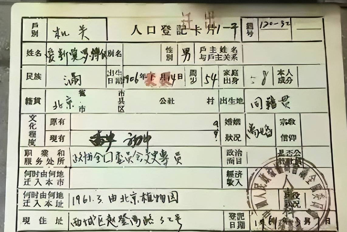 1959年12月,北京的一家派出所,迎来了一位特殊的户籍登记者。