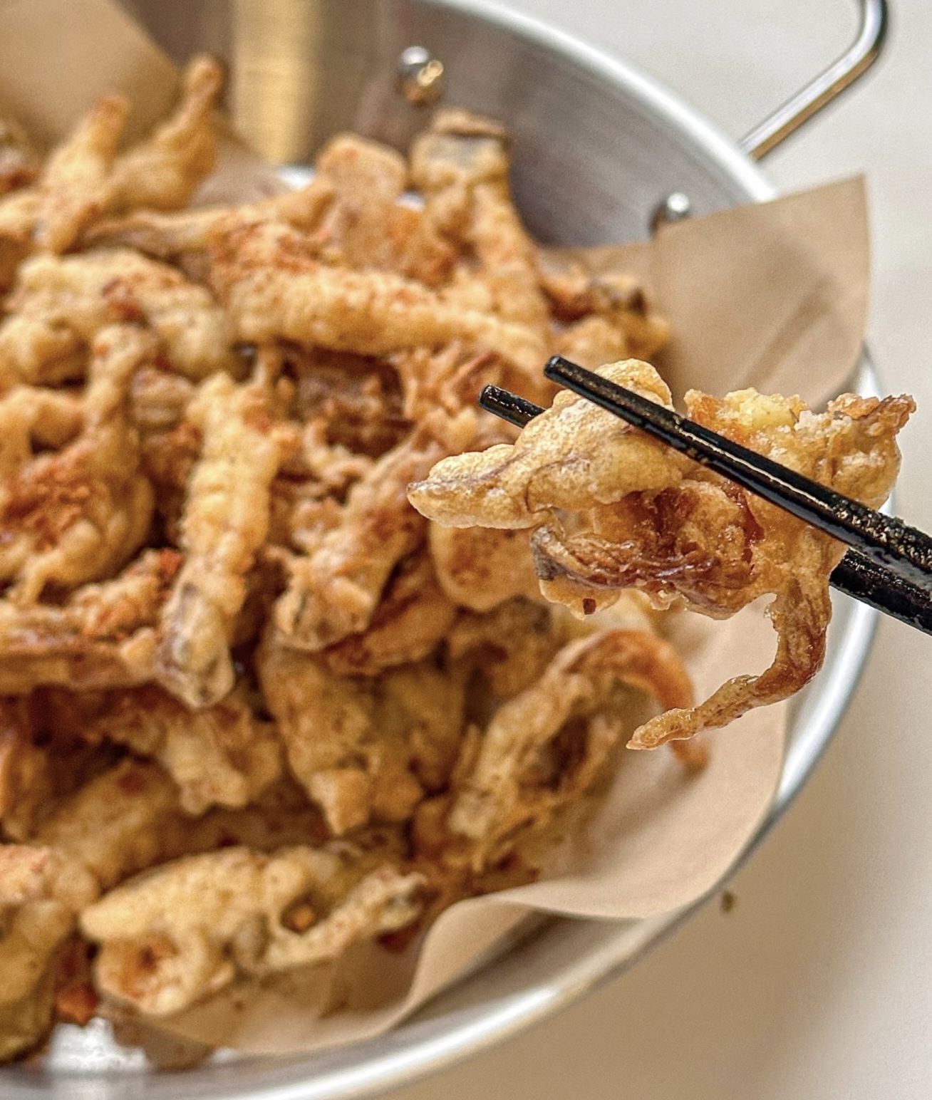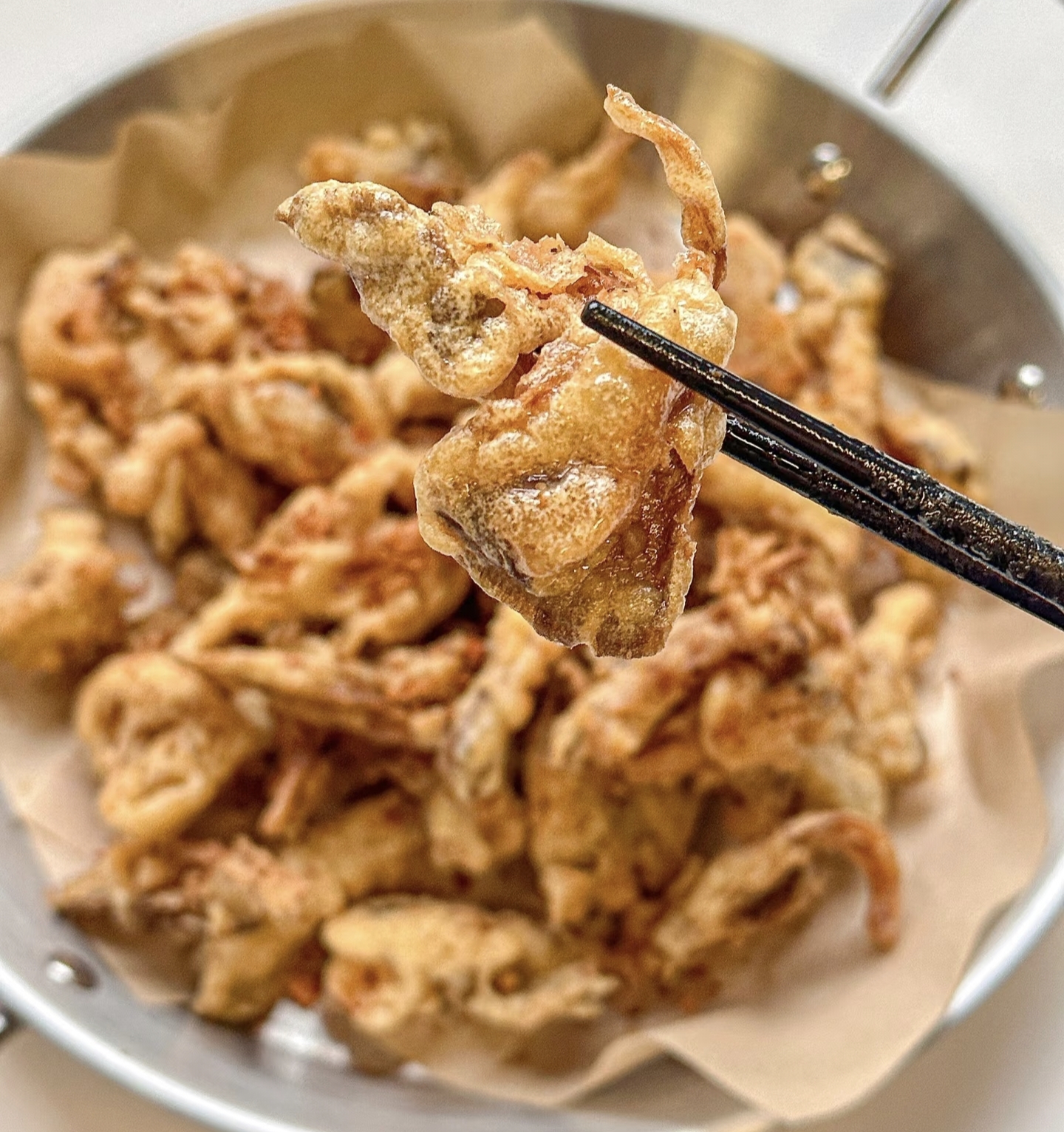 现在开始炸平菇啦!锅里倒入适量的油,油量要能没过平菇。开中火把油烧热,烧到大概六成热的时候,就可以下平菇了。怎么判断油温六成热呢?你可以拿一根筷子插进油里,如果筷子周围冒出很多小气泡,就说明油温差不多了。把裹好面糊的平菇一个一个地放入油锅里,别一下子全倒进去,不然容易粘在一起。炸的时候要时不时地翻动一下,让平菇受热均匀。炸到平菇表面变成金黄色,就可以捞出来了。不过这时候的平菇还不够酥脆,我们还要进行二次复炸。把火调大,等油温升高到八成热的时候,把炸好的平菇再次放入油锅里,快速炸 10 - 15 秒,然后迅速捞出来控油。二次复炸能让平菇的外皮更加酥脆,而且还能逼出多余的油脂,吃起来更健康。