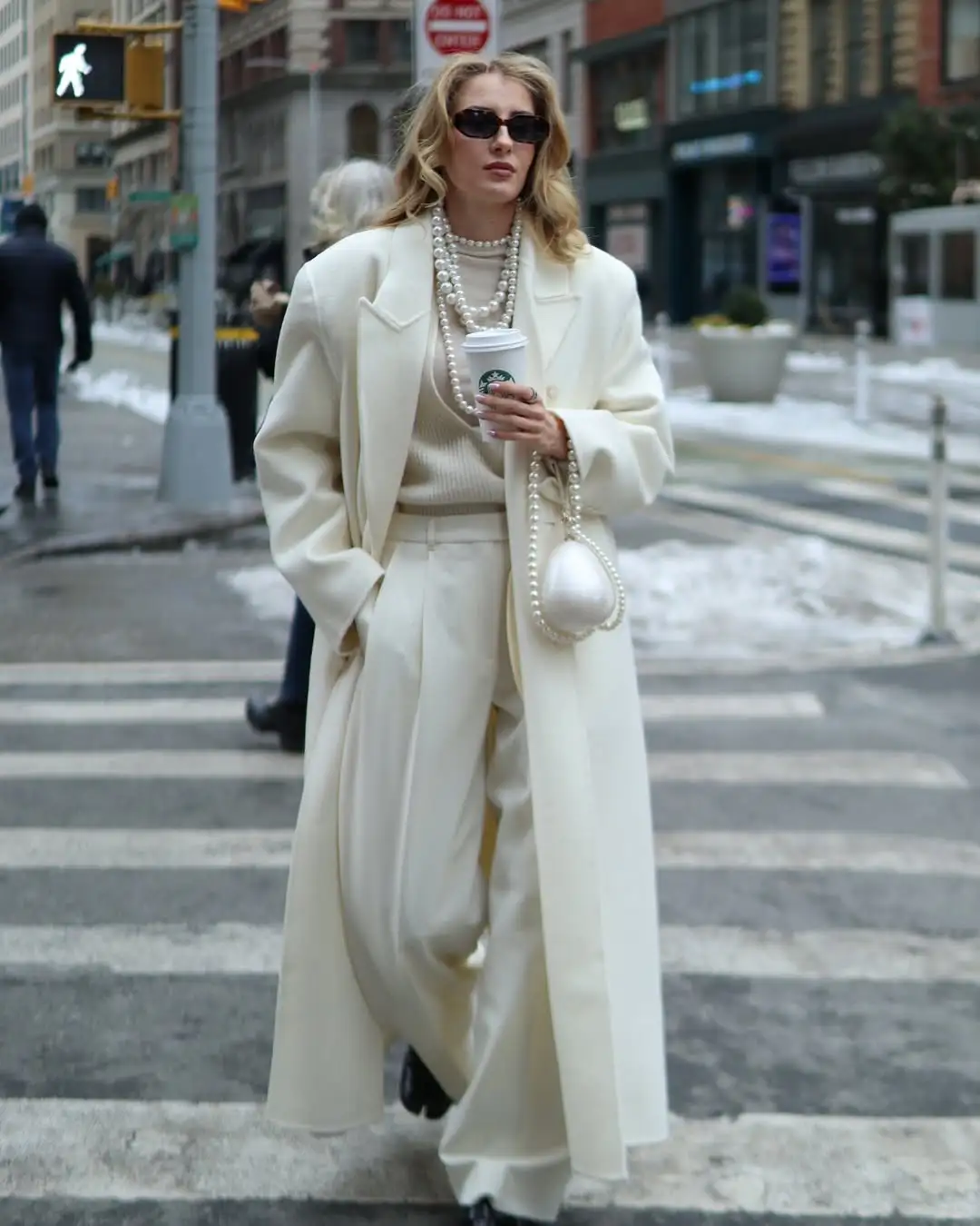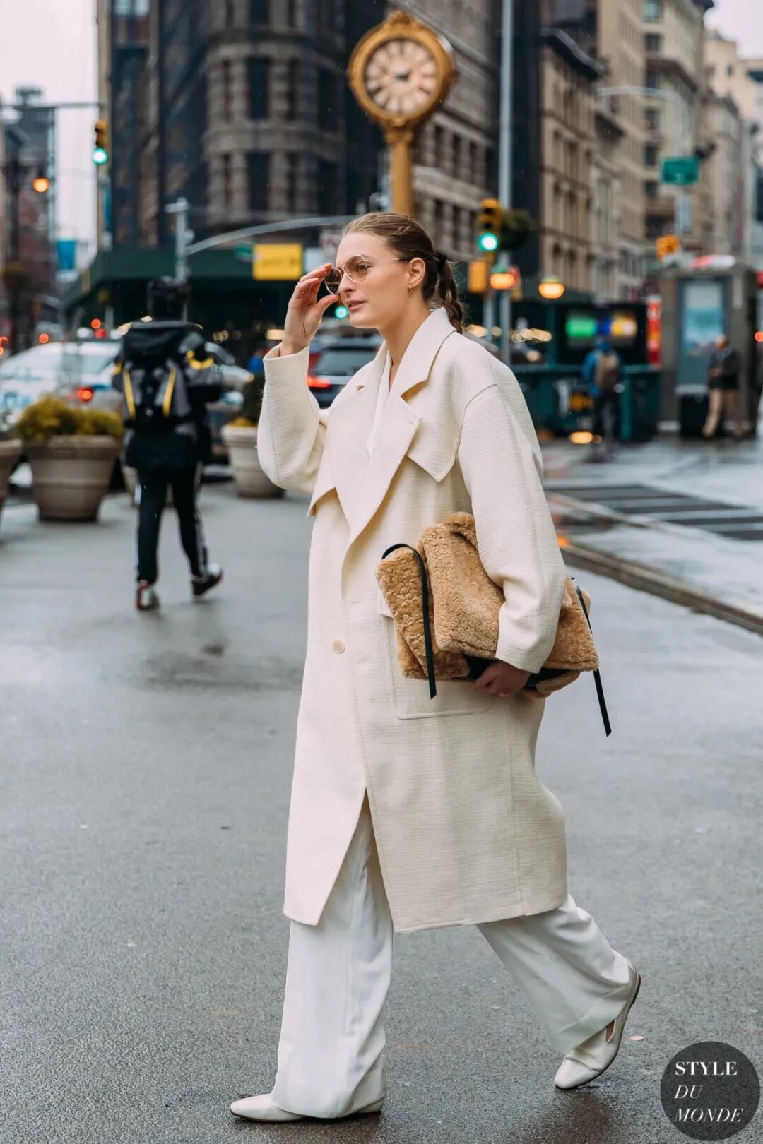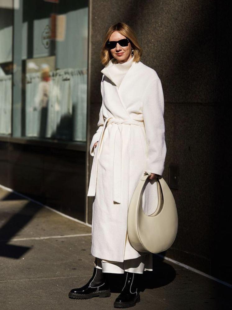 最适合用一件白色大衣来点亮沉闷的冬日。
