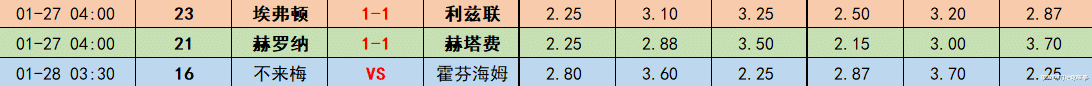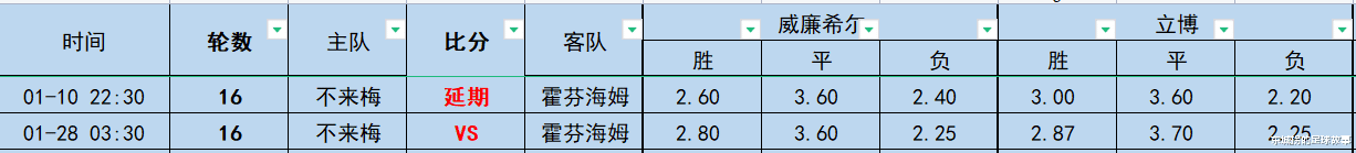 刚才咱们也说了,霍村高出1档也算合适,对比两队的状态,霍村理应得到更多的支持,所以三家顶平的态度对于霍村也是没问题的,那么两队信心关注肯定在霍村,阿拐认为中间项高起并不会增加霍村的负担,反而顶起的中间项会顺势拉低左右两边,降低回报,同时也会吸引一些博冷关注,加上通过下表,大家也能发现,这两天同指数开了很多,阿拐认为也会存在交叉的可能性,所以无论是从比赛数据还是整体布局,阿拐都会选择霍村,看好霍芬海姆继续开心。