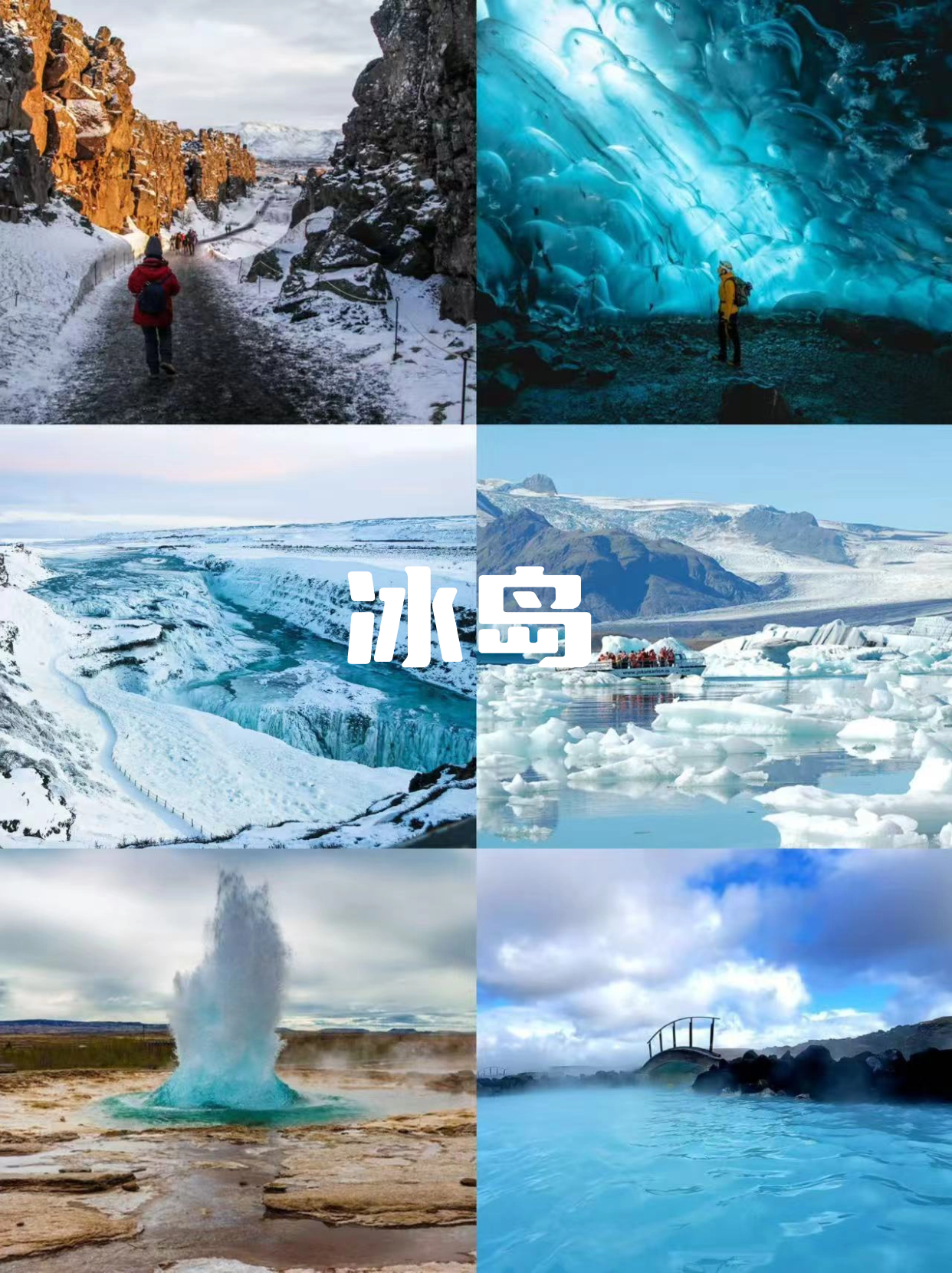 🇮🇸冰岛|世界尽头的奇幻✔️杰古沙龙冰河湖:乘水陆两栖船,近距离触摸漂浮冰✔️黄金圈三件套:间歇泉+黄金瀑布+辛格维利尔国家公园✔️蓝湖温泉:在奶蓝色地热湖中敷硅藻泥面膜✔️瓦特纳冰川:深入内部,阳光船头冰层折射梦幻的蓝色