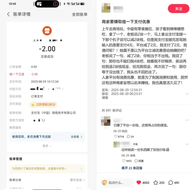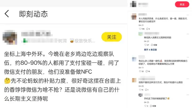 其次,在推广初期,大量用户的使用动机源于支付宝提供的“立减”优惠。在社交媒体上,分享“碰一下”的优惠攻略、寻找支持“碰一下”的优惠商家,一度成为潮流。这种“薅羊毛”心态,让人不可避免地联想到当年银联为推广云闪付而进行的“撒钱”大战。