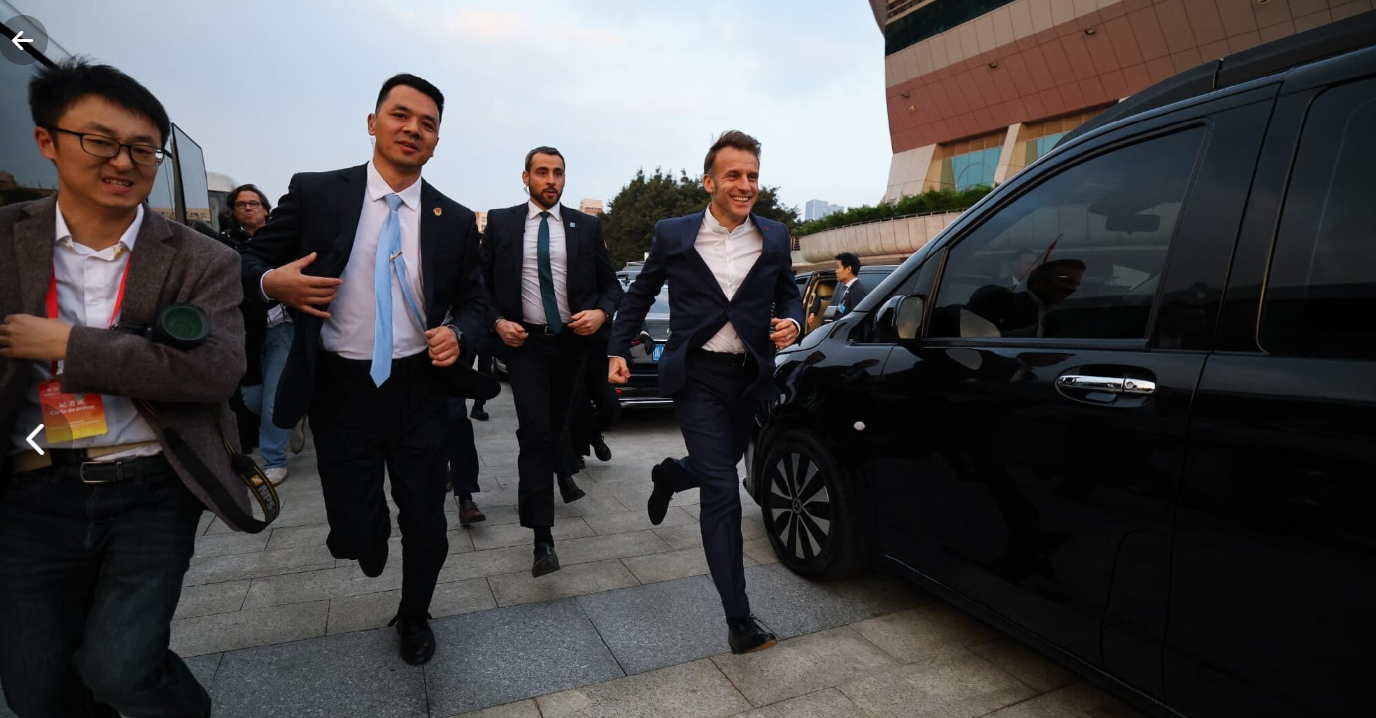 作为1977年出生的人,马克龙也是快奔五了,然而在年轻人面前他不服老,一路奔跑着去见川大学生,而且跑着的表情很丰富,感觉此时的马克龙不是总统,也变成了一名活力满满的大学生了。
