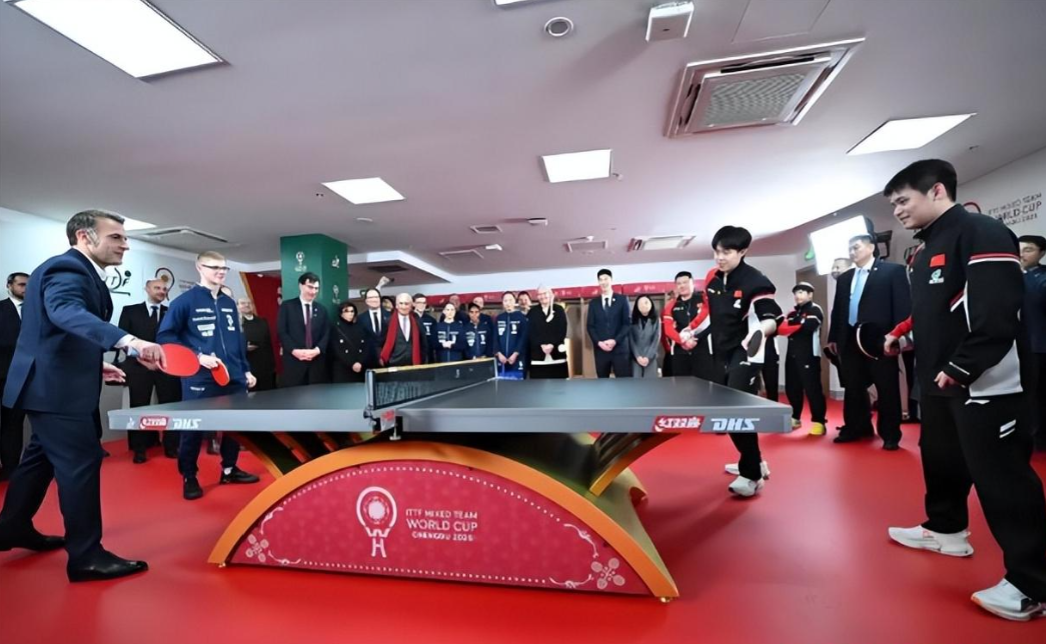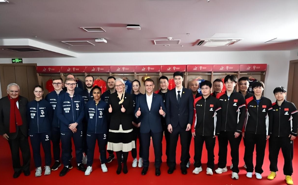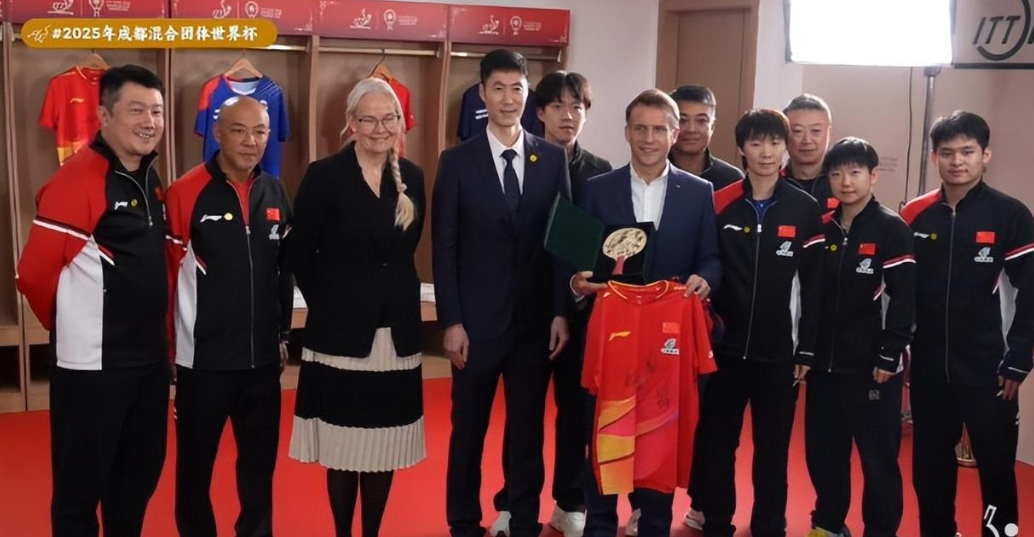 只能说马克龙爱好广泛,不但能当好总统,而且也能打的了乒乓球,以小球推动中法友谊,还获得了一件球衣做纪念。