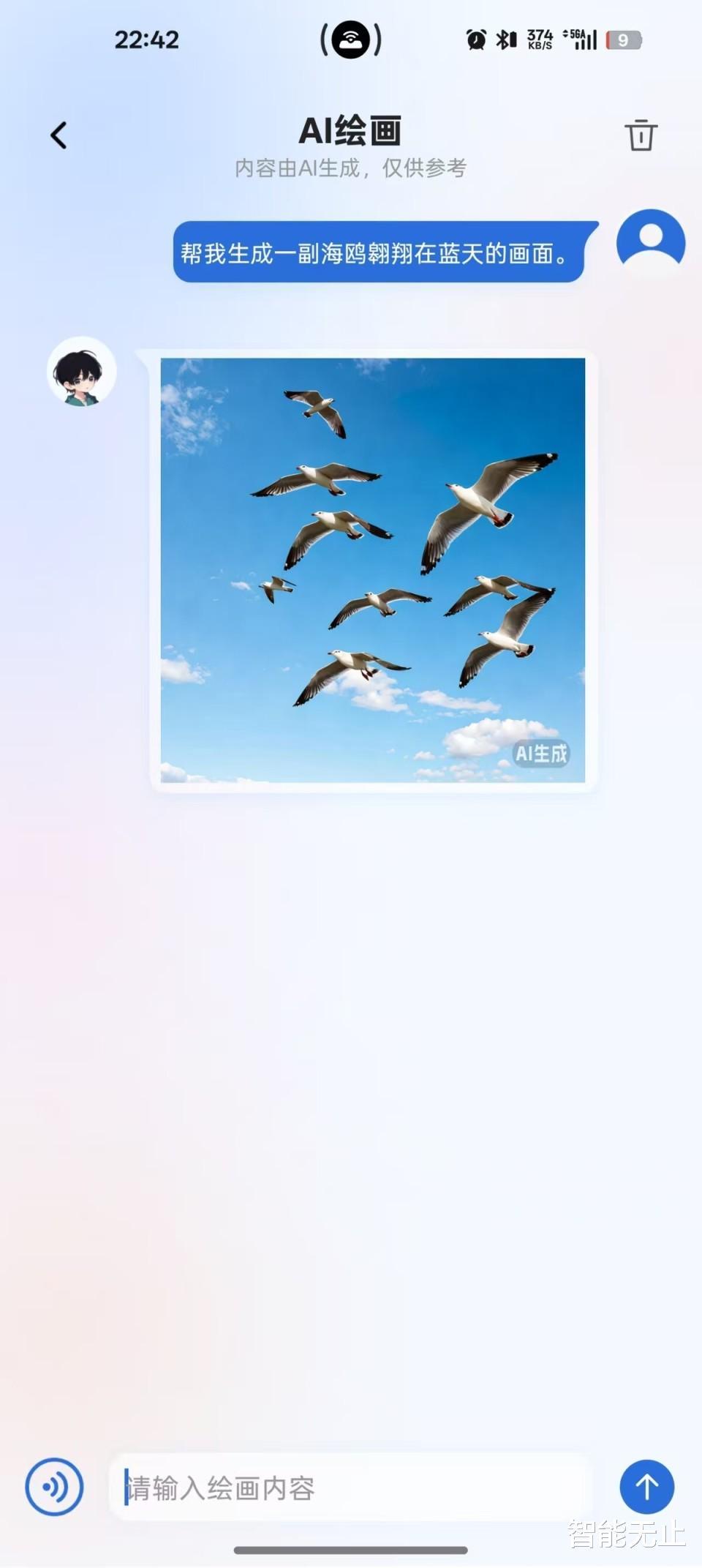 除此之外,我用得较多的还有AI绘画功能,这个可以说相当的省心和方便,直接选择文生图功能后,用一段话描述要生成的图片样式,随后即可生成我想要的图片了,例如头像之类的等等,对于图片创作小白来说相当的友好!