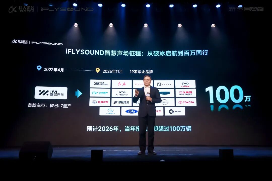 据科大讯飞联合创始人、总裁吴晓如在iFLYSOUND智慧声场品牌发布会上所言,iFLYSOUND落地的首款车型是2022年4月量产上市的上汽智已L7,截至目前,已经发展到19家主流车企品牌,落地100万辆车。