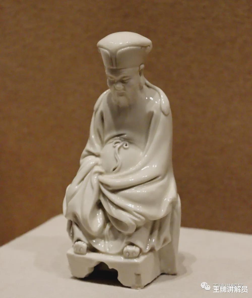 (德化窑白釉东坡像,明代,故宫博物院藏。据说东坡巾由苏轼发明,但缺乏证据)