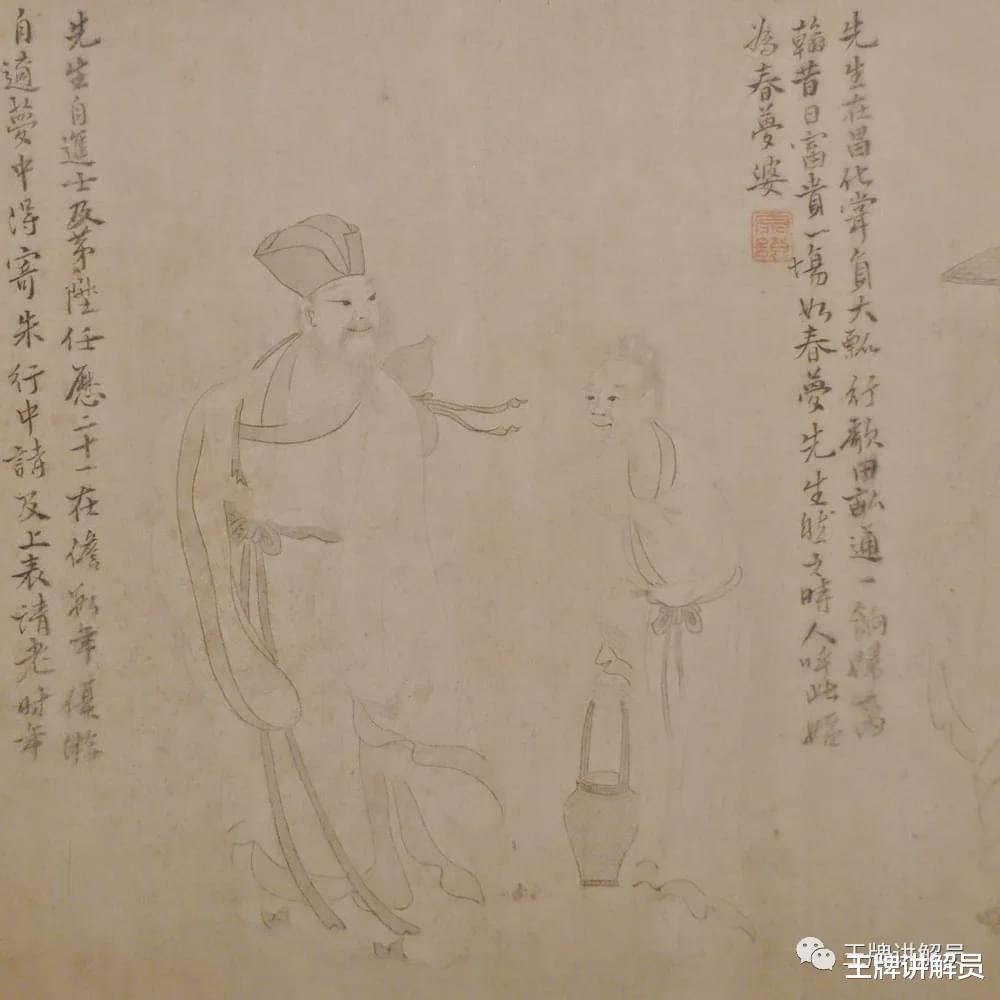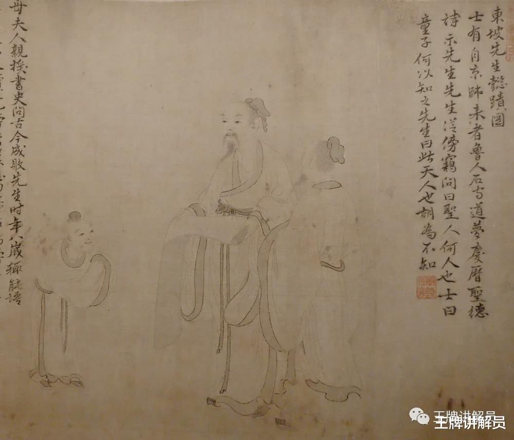 这幅画长达三米多,描绘了东坡先生十三个小故事。画工不算出众,但情节有趣,有些确有其事,有些是后人的附会,真真假假,如同现在的明星八卦: