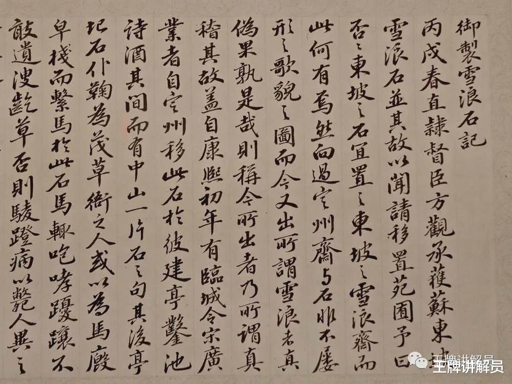 (乾隆认为清代发现的雪浪石是真的,钱维城神吹皇上考据详实,特意用苏体抄录皇上的鉴定意见,但我觉得皇上看走了眼)