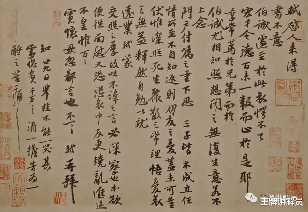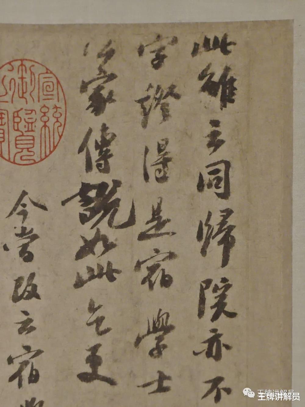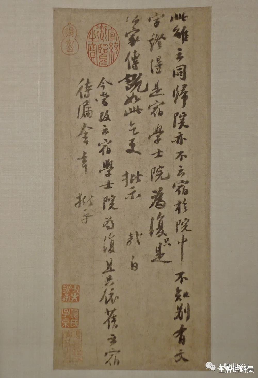以第一单元为例,明面儿上是介绍苏轼的朋友圈,用一件书法作品介绍一位人物,没什么新意。但我敏锐地发现,策展人其实想通过几件看似“随意挑选”的帖子,梳理北宋书法的发展脉络!介绍北宋书法对中国书法史的独特贡献!
