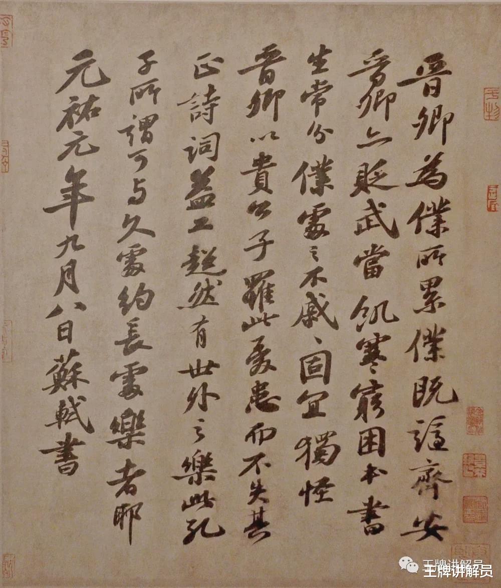 除了《渔村小雪图》,还有一件书法与王诜有关:苏轼《题王诜诗词帖》。