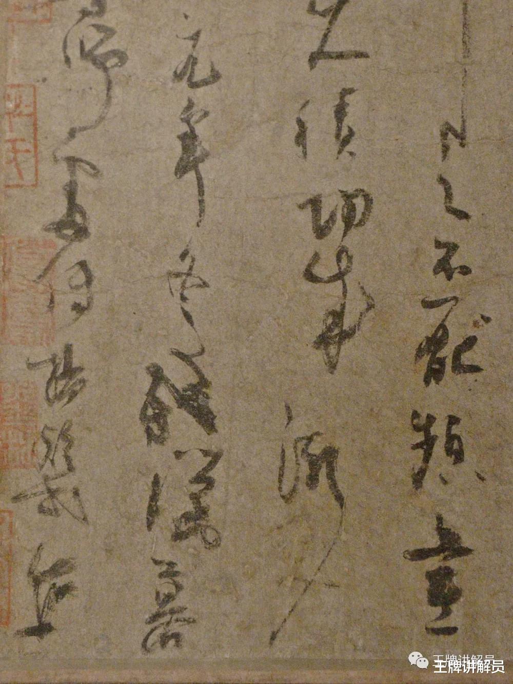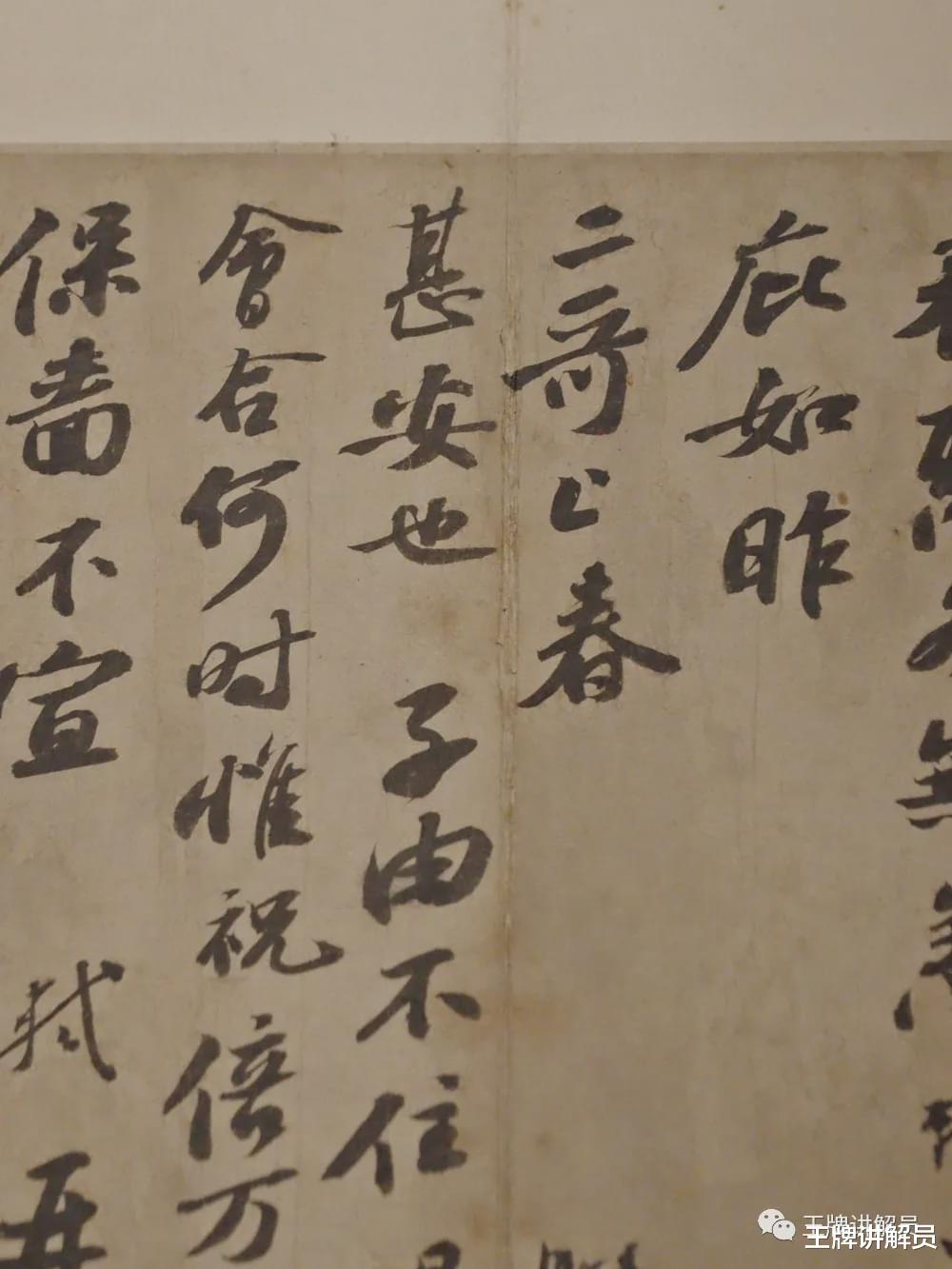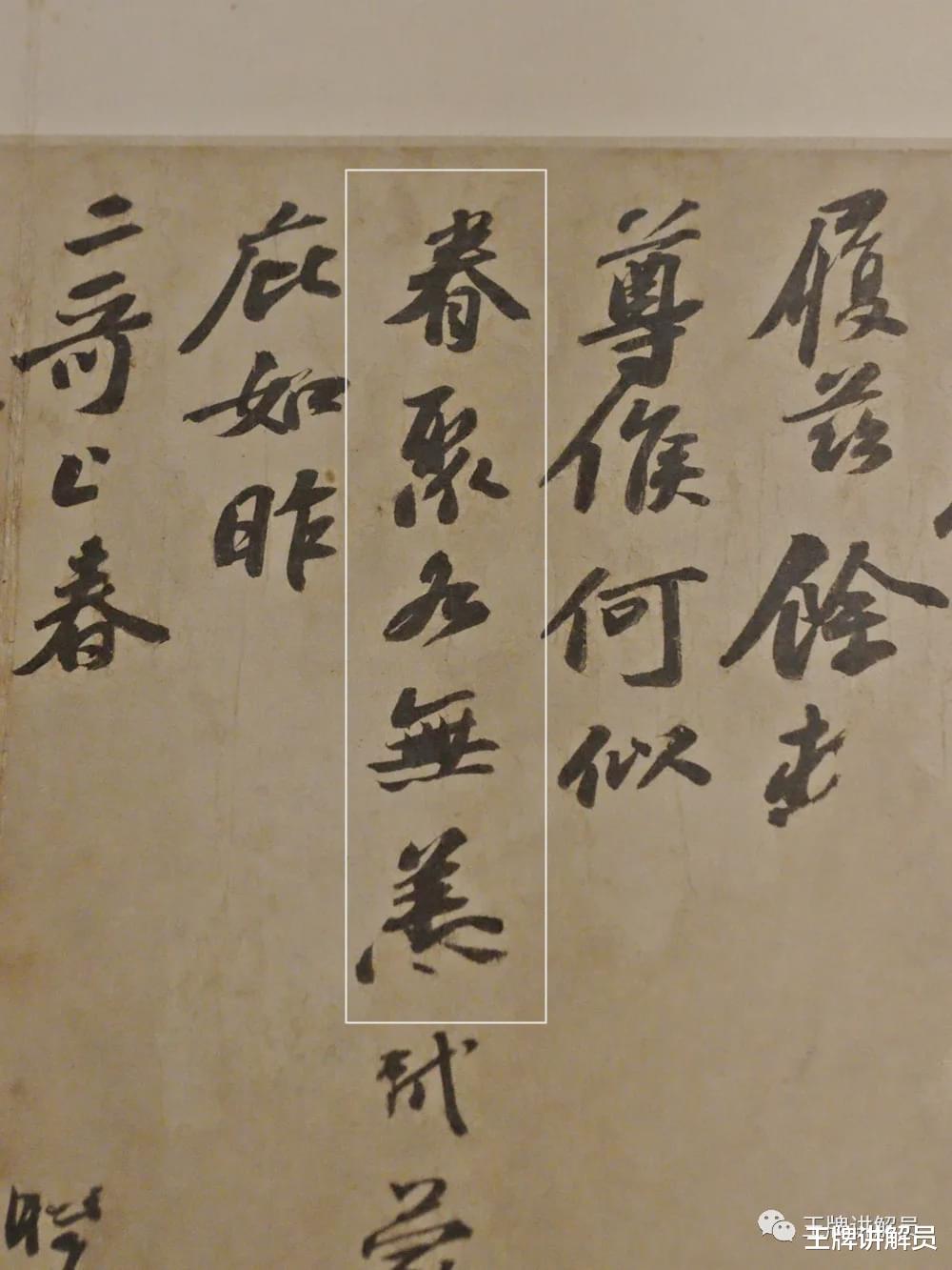 值得一提的是,《春中帖》曾经破损明显,经历了精心修复,一些看似流畅的笔画应该进行过“接笔”,不得不说修复师的工作不好干啊: