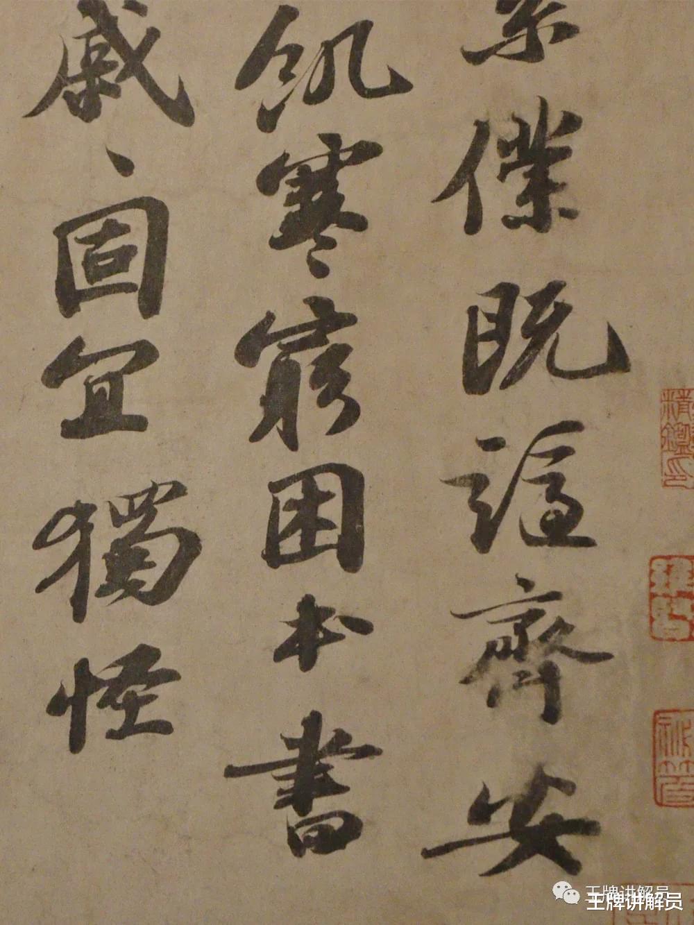 二、九件墨迹完整涵盖苏轼早中晚期作品,提供了难得的学习机会。《治平帖》和《新岁》《人来》二帖是几乎任何介绍苏体的文章都不会漏掉的早中期代表作,首次展出的《三马图赞并引》则弥补了故宫藏品中苏轼最晚期书风的缺环,而特邀嘉宾《西楼苏帖》贡献了仅存的苏轼临摹王羲之的作品《讲堂帖》。