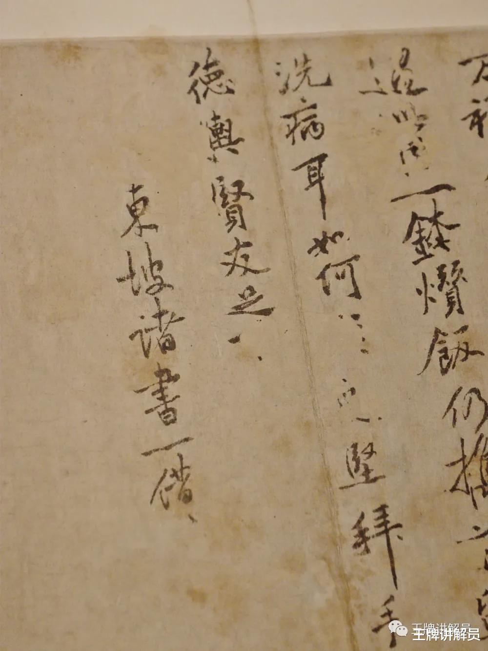 (黄庭坚希望借德与的“东坡诸书”一观。黄庭坚比苏轼小九岁,为苏门四学士之一,二人亦师亦友,情谊深厚,但黄庭坚直接提及苏轼的墨迹仅有此帖与《寒食帖》保存至今)