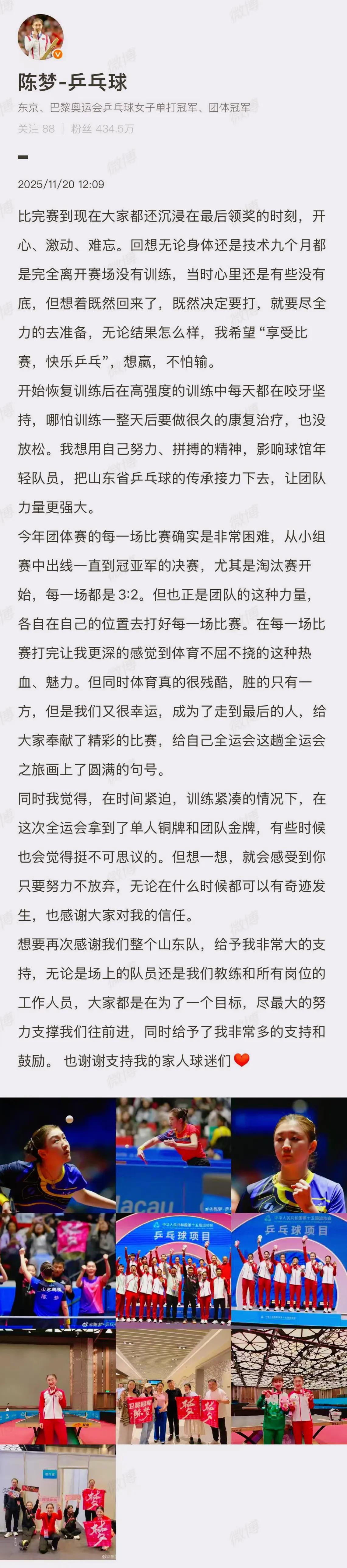 陈梦马上32岁了,巴黎奥运会女单冠军她拿过,这次全运会又带队赢了,孙颖莎年轻,才23岁,虽然这次输球但单打成绩一直很好,粉丝们在赛场上的吵闹声太大,被媒体报道后网上讨论很激烈,有人说运动员应该专注比赛,也有人觉得支持选手是正常事。