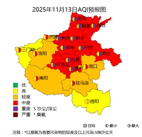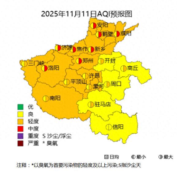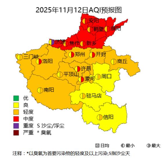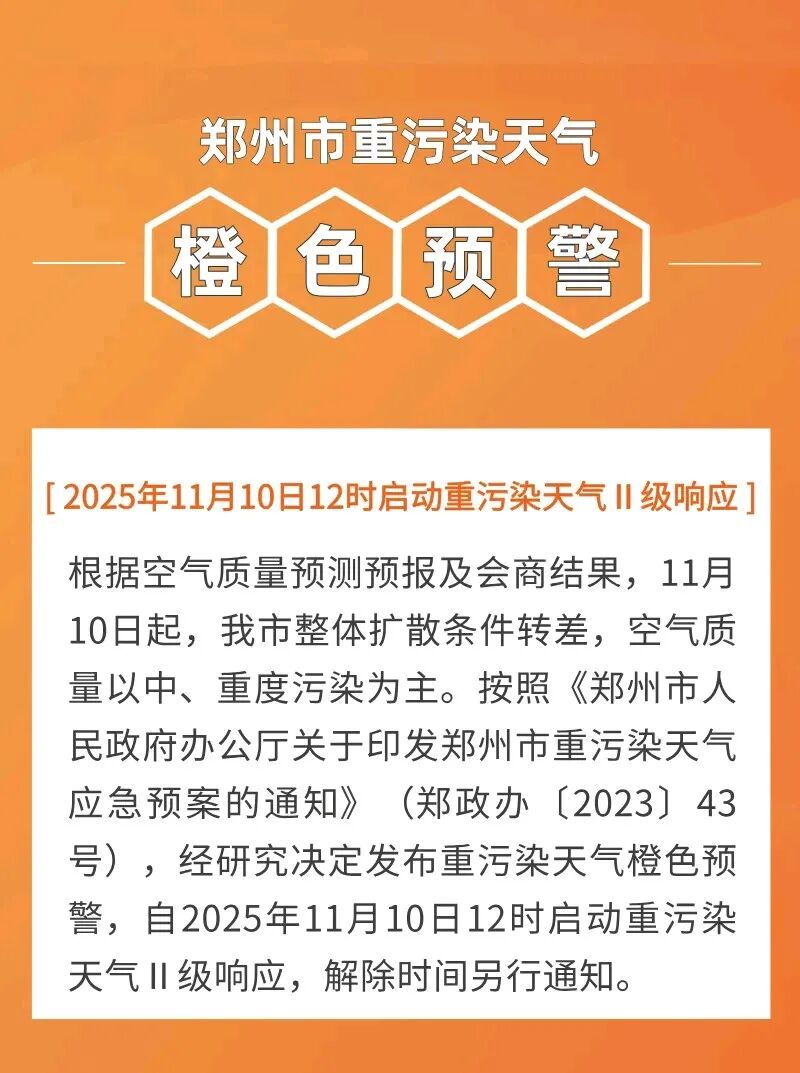 根据空气质量预测预报信息,11月10日起,受不利气象条件影响,河南多地可能出现连续中度污染天气过程。按照重污染天气应急预案,郑州、濮阳、焦作、济源等地启动重污染天气橙色预警。
