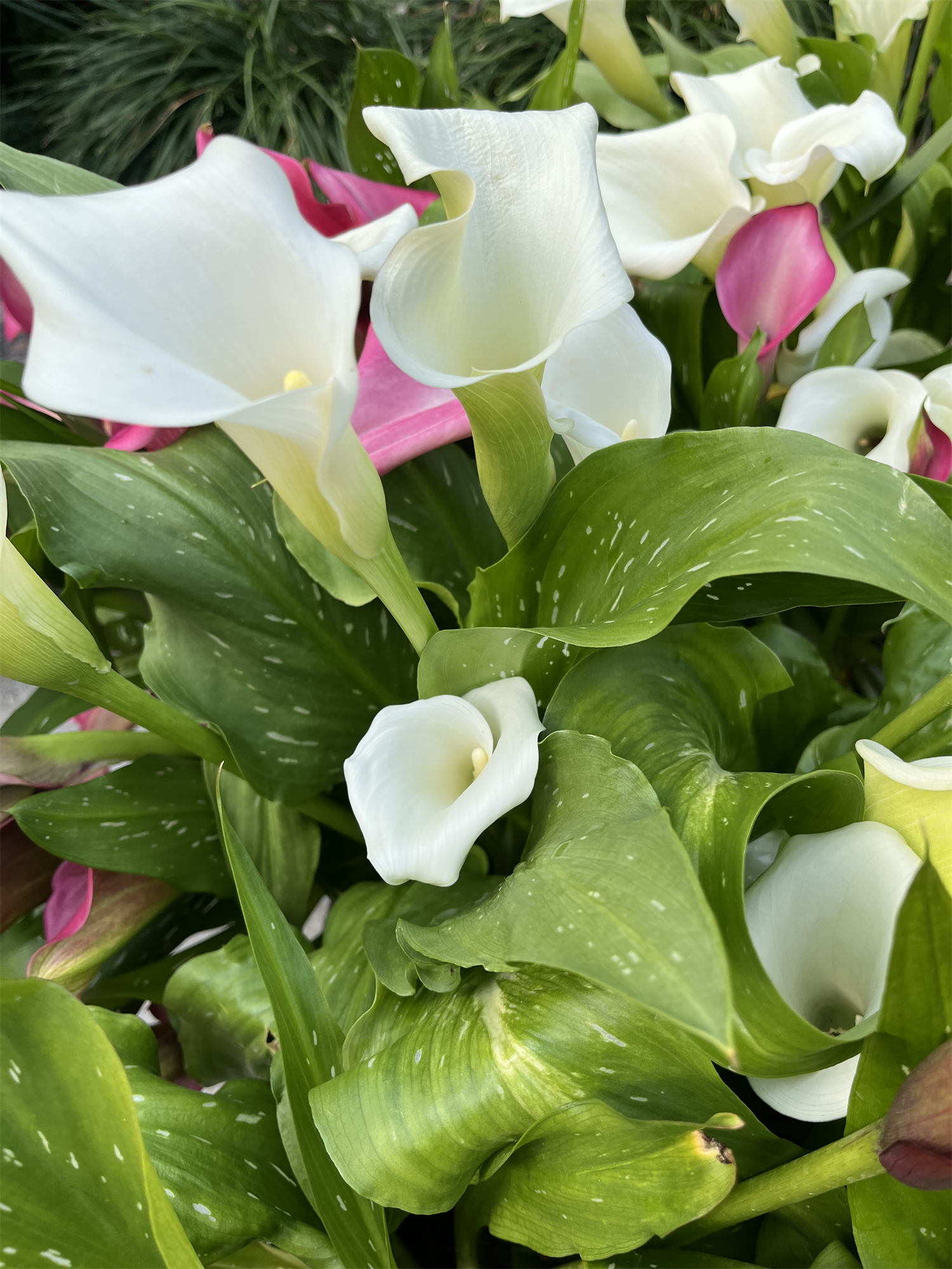 白色马蹄莲:象征着纯洁无瑕的爱和忠贞不渝的情感,适合送给爱人或妻子,表示对感情的坚定不移。