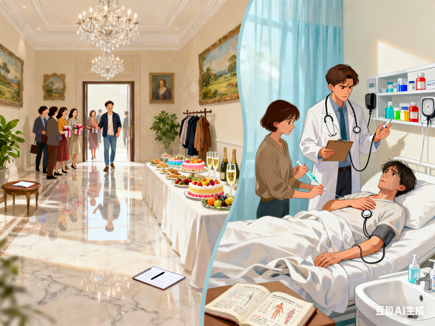 作者在此举例了自己的梦,他梦见自己在一个大厅里招待宾客,因为自己的妻子在白天表达了想在生日当天宴请一些朋友的愿望,而这些宾客就是其中的一些朋友。之后遇到了一位朋友生病,和一位医生朋友为她进行检查,是在重复一些白天医生工作的延伸。在碰到需要打针的场景时,提到了一个关于性激素代谢的一种产物,在打针的时候作者指责帮忙的朋友,表示针筒可能不干净。这部分一方面是觉得对方毛病可能是“性”不满足而产生的,另一方面是一些作者自己已经经历过帮别人打针的事情。