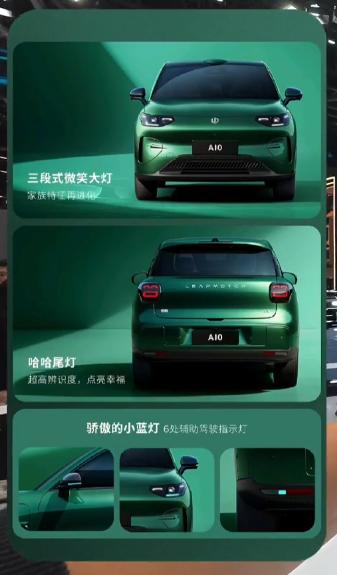 在车展上逛了不少入门级纯电车型,发现很多品牌对低价车都有些敷衍,要么外观设计千篇一律,缺乏专属质感,要么内饰大面积用硬塑料,摸起来粗糙廉价,配置上只够满足基础驾驶,很难有额外实用功能,总让人觉得刚需用车只能妥协将就。但零跑A10完全不一样,整车走科技自然美学2.0设计思路,延续零跑成熟设计比例,自带欧系小车的精致感,前脸采用封闭式格栅设计,搭配三段式微笑大灯,点亮后线条舒展柔和,辨识度很高,看着活泼不呆板,日常开着也能多几分好心情。