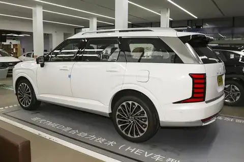 侧面线条:方正立体,时尚运动转到车身侧面,整体轮廓方方正正、立体感十足,这也是中大型 SUV 常见的造型,给人一种特别扎实、可靠的感觉。不过,新一代现代帕里斯帝可不止是扎实,它还有很多设计上的巧思。A 柱到 C 柱都采用了熏黑处理,而 D 柱则搭配了亮色镀铬装饰,这种独特的搭配就像是给车顶施了魔法,营造出一种悬浮式的效果。原本可能会显得有些厚重的车身,一下子就变得轻盈、时尚起来,就像给一个稳重的大叔穿上了一件时尚的外套,增添了几分年轻活力。而且,前短悬、后长悬的设计也很有讲究,它让车身侧面的视觉重心向后移动,就好像一个运动员在起跑前,身体微微后倾,蓄势待发,给人一种很强的 “俯冲感”,打破了传统大型 SUV 侧面那种沉闷、呆板的感觉。轮毂方面,新车根据不同配置提供 18 英寸、20 英寸和 21 英寸三种选择,大尺寸轮毂搭配上方正的车身,就像给车穿上了一双酷炫的运动鞋,进一步强化了整车的运动氛围与大气质感,不管是在城市道路上穿梭,还是在郊外的公路上驰骋,都特别有范儿。