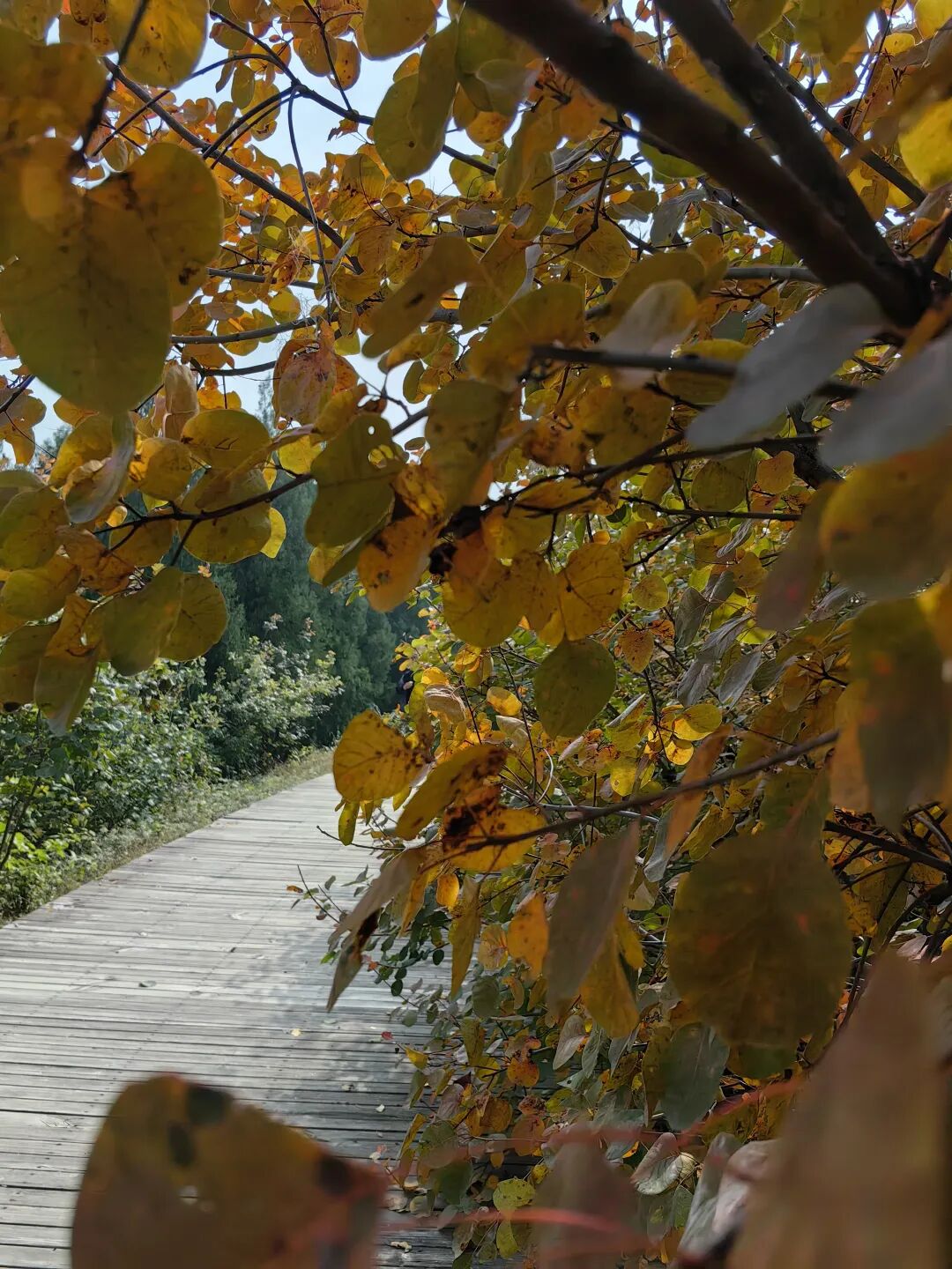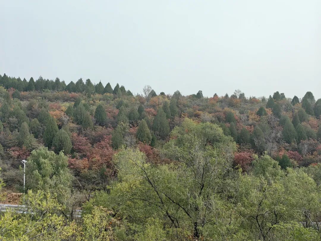 往回走,没有坐观光车,不太远,途中可看到红绿黄秋叶。