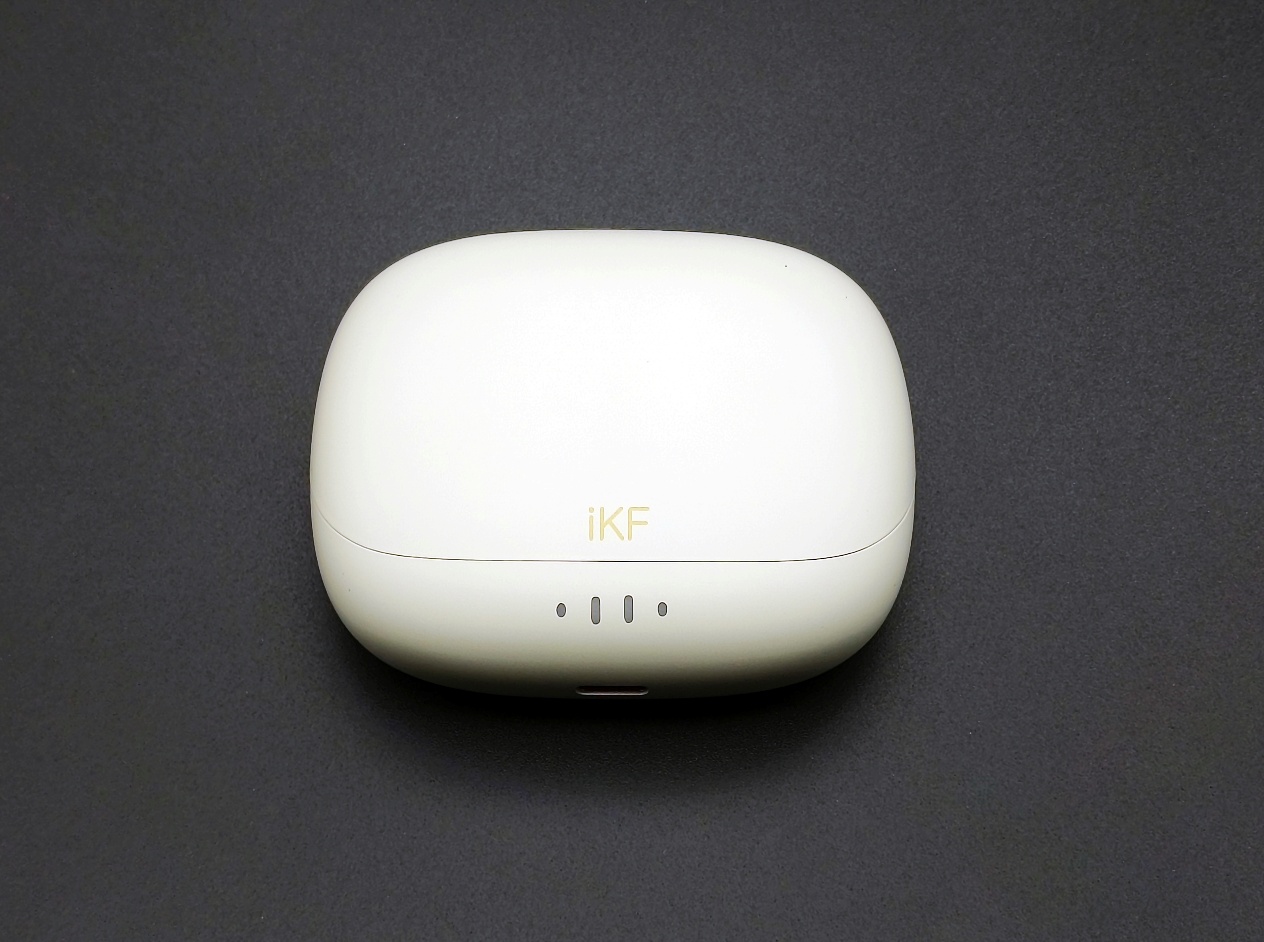外观&佩戴体验先来说说这款耳机的外观,它的充电仓采用了流线型设计,外观简约时尚,搭配iKF的烫金丝印,轻奢感直接拉满。