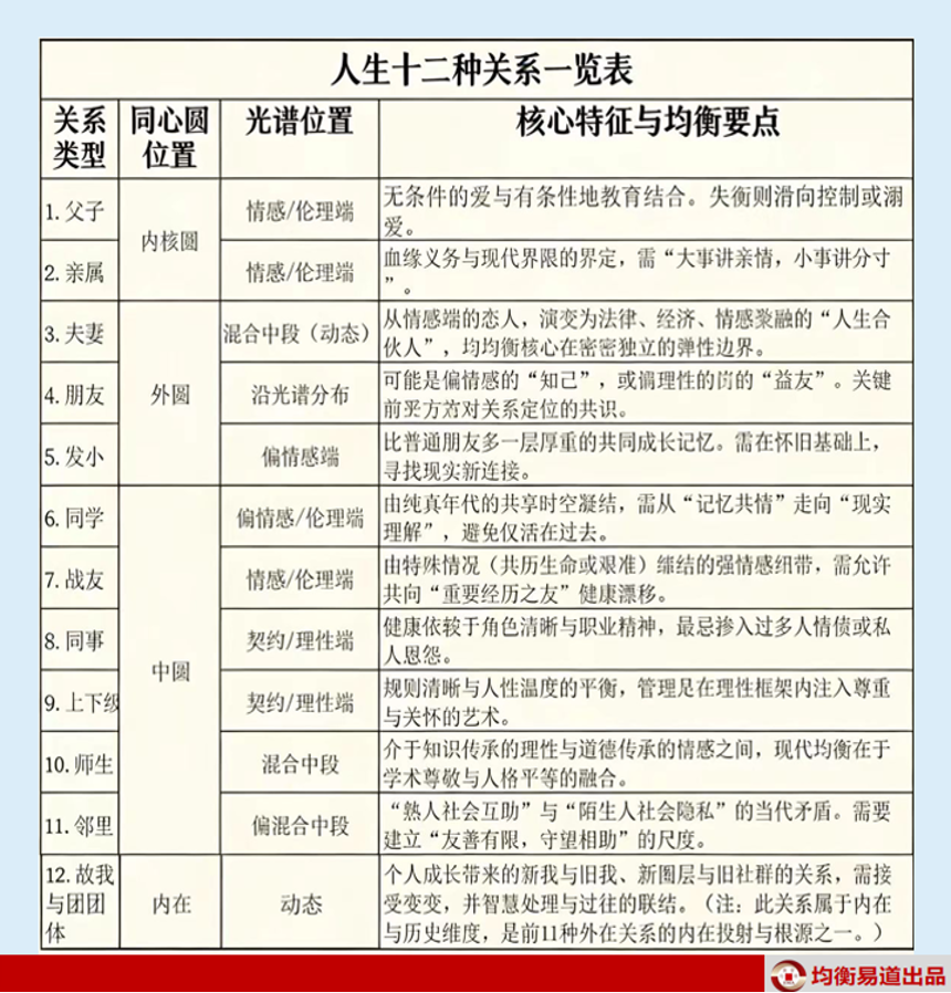 管理好十二种核心关系,绝非社交技巧的简单叠加,而是一场深刻的自我认知革命和生命能量的战略分配。每一次关系的清醒定位,每一次成功的校准,每一次优雅的调适,都是在为我们时常混乱的内心世界引入秩序,为我们容易耗散的生命能量修筑护城河。