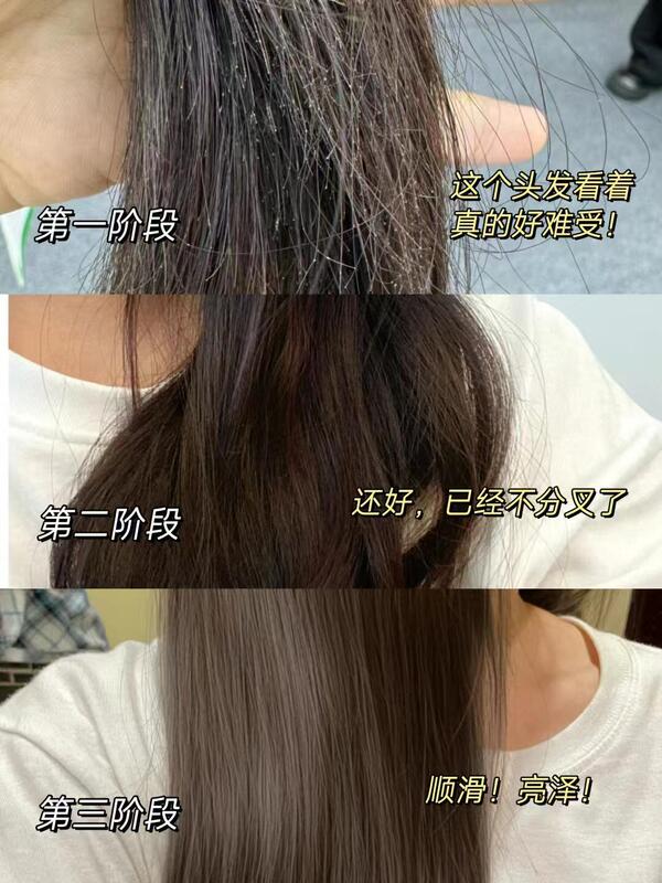 作为染发常客,对这类产品向来挑剔,这次试完只能说改善有限但有细节打动我。比如某次洗完澡忘记吹头直接睡,第二天醒来惊觉发尾没有预期中干枯翘裂,虽然整体还是偏涩,但至少没崩成海藻头。可惜日常通勤戴头盔后再摘下来,颅顶立马塌陷+两鬓炸起,说明表层顺滑支撑力太弱。从技术角度看,可能是加入了挥发性载体辅助渗透,让养分先渗再锁,逻辑成立,但对抗外力损伤的能力确实一般。