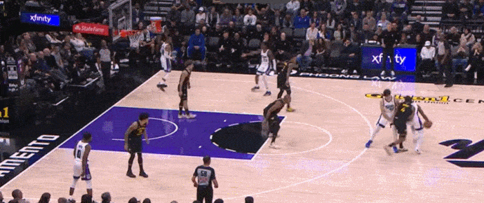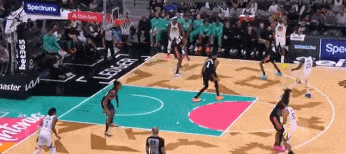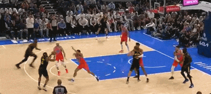 同样是半转换进攻中 错位卡位中锋 最后导致对方失误