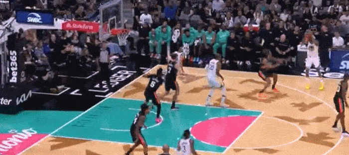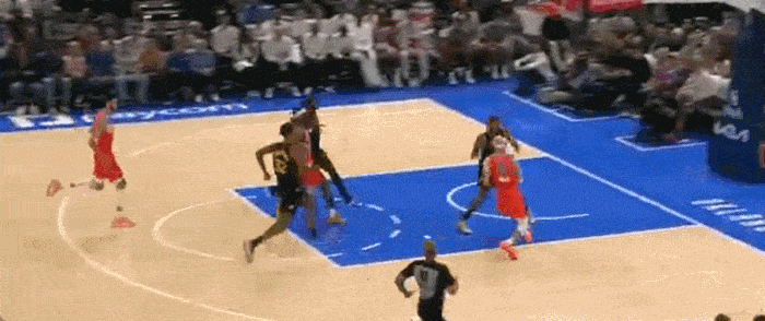 这是一个回合 先是努力挤过掩护 随后立马回追 封盖德罗赞
