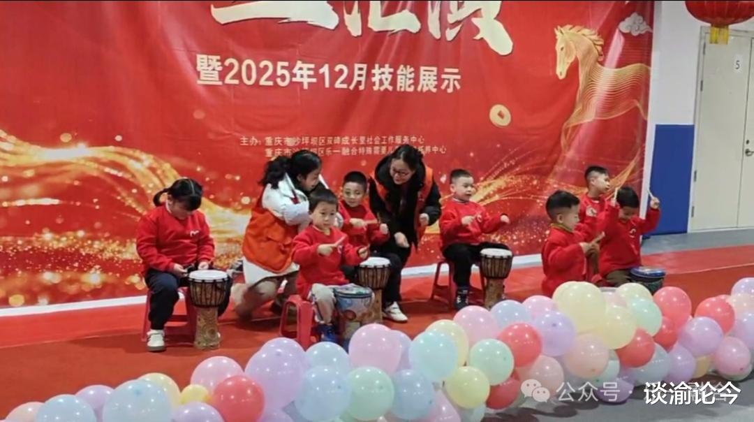 清脆的鼓点,跳跃的童心,台上孩子们动作整齐、笑容满面。阳阳、小鸿、希希全程独立完成,节奏感强;而曾经的小魔王小马今天在台上完全放开了自己,敲鼓的样子可爱又认真;小魏带着笑容完成了本次表演,曦妹儿也在老师辅助下安坐表演……孩子们的每一步,都是进步。