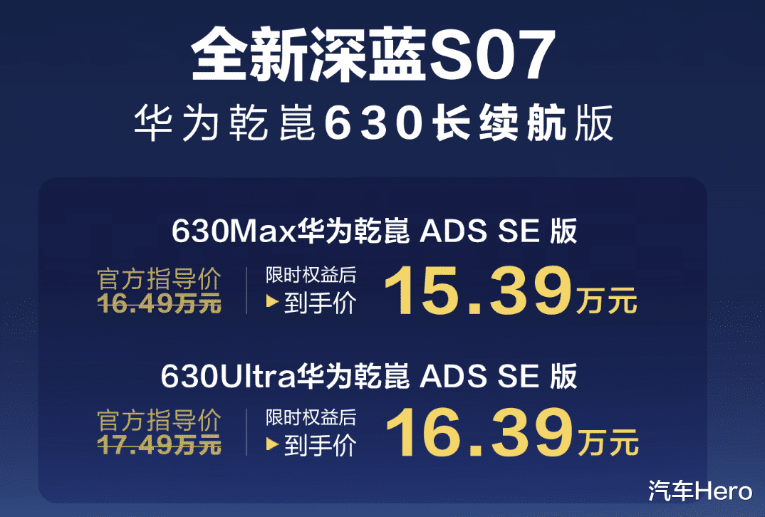 取消宁德时代电池,搭华为智驾,深蓝S07新增630Km车型