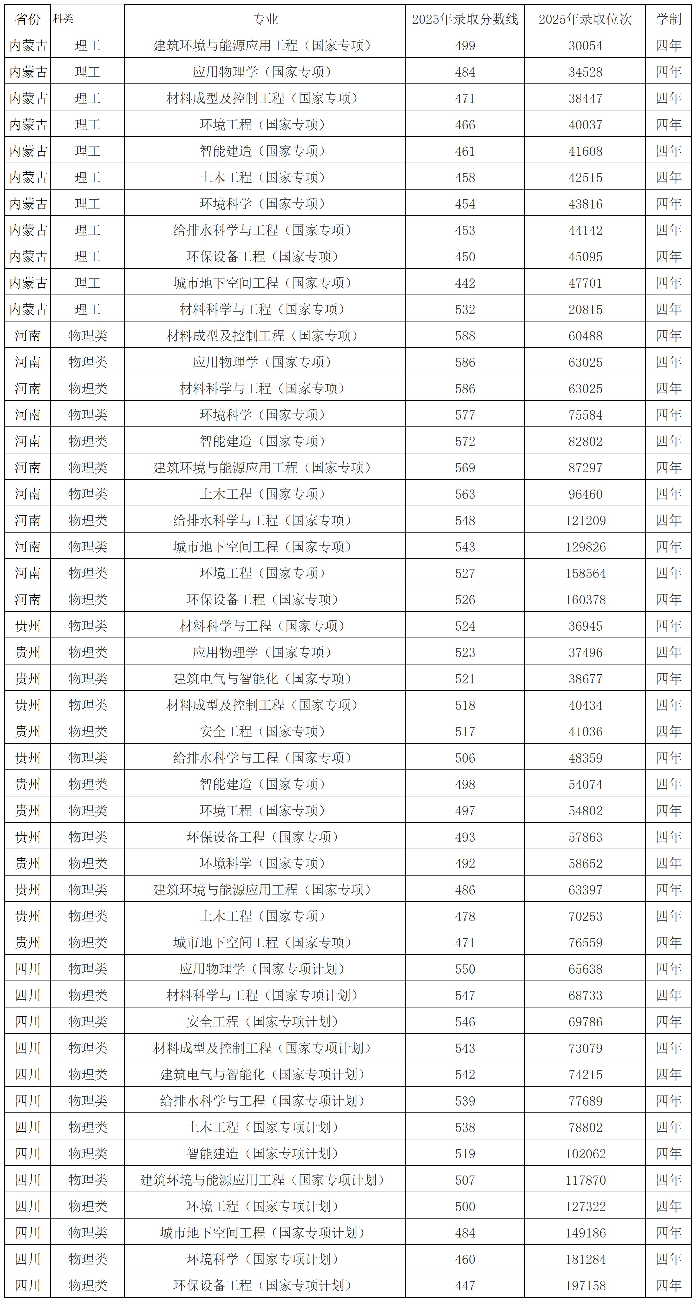 青岛理工大学2025年国家专项在各省各专业录取分数线