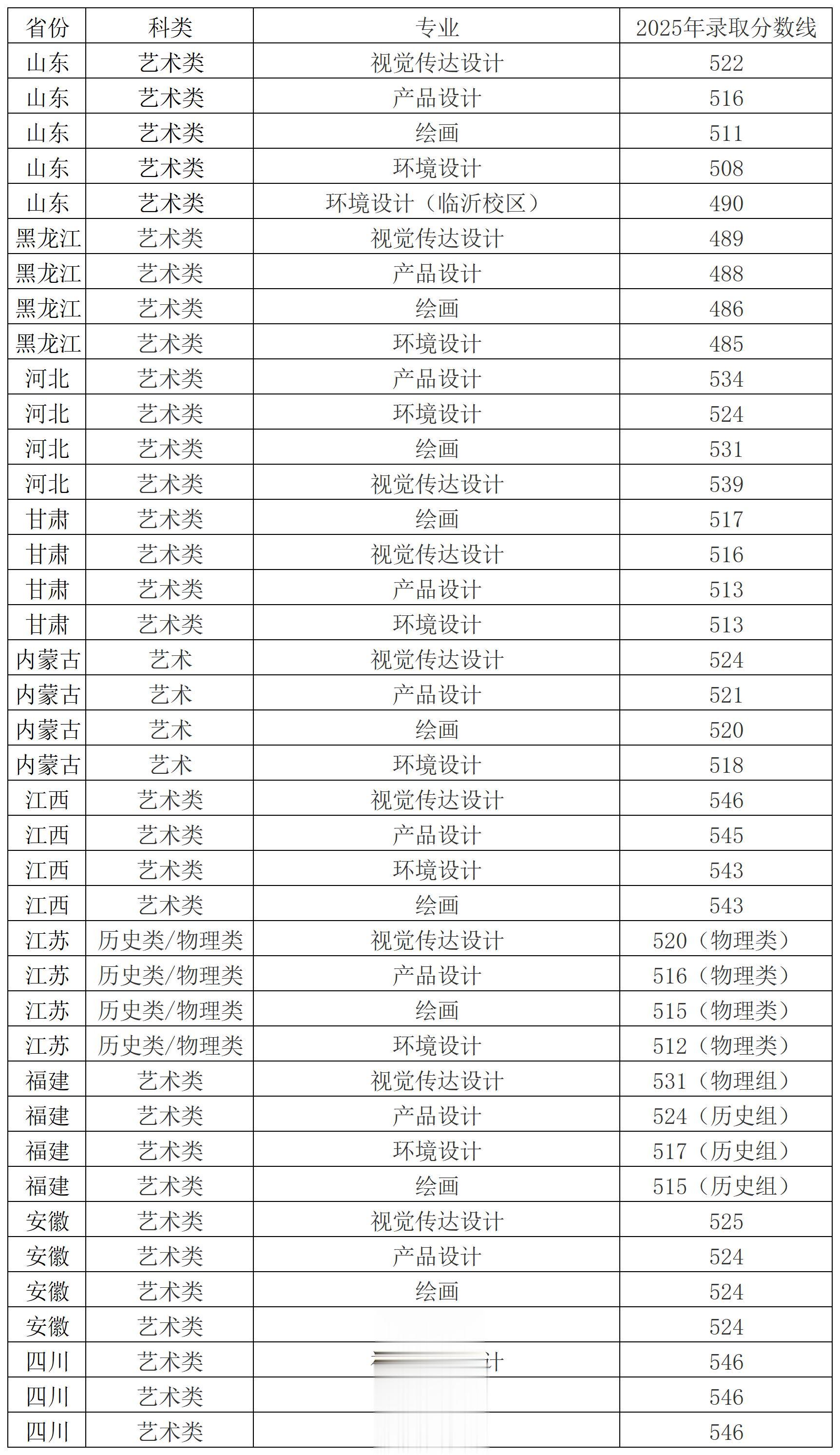 青岛理工大学2025年艺术类在各省各专业录取分数线