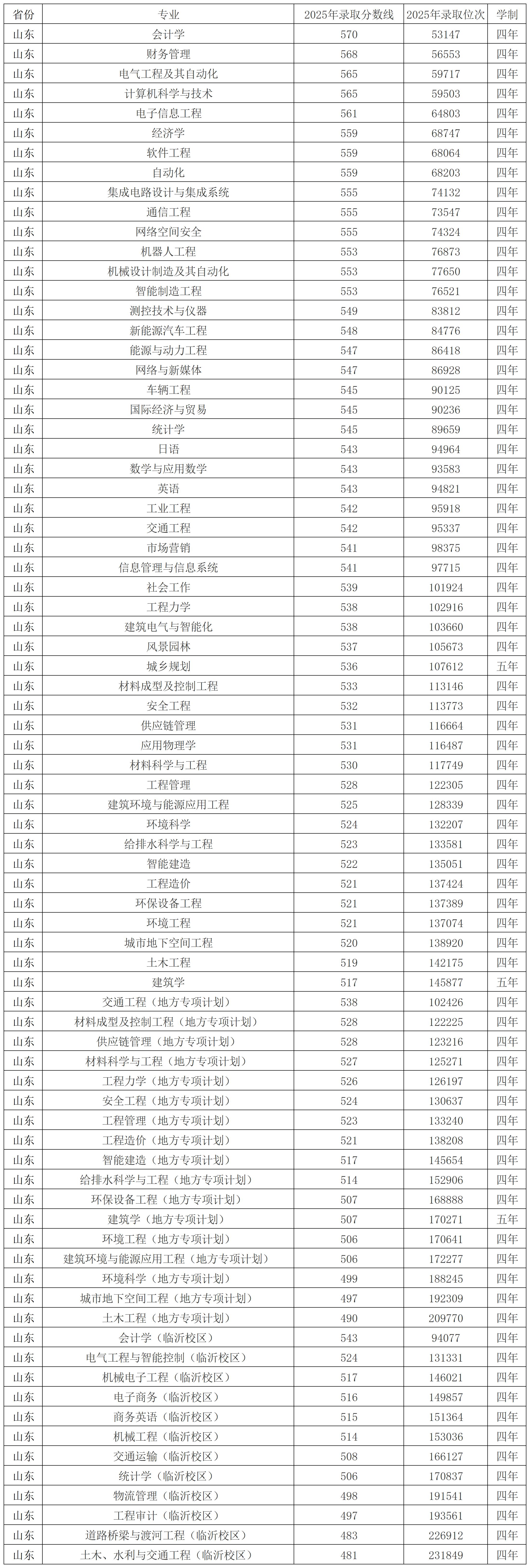 青岛理工大学2025年中外合作在各省各专业录取分数线