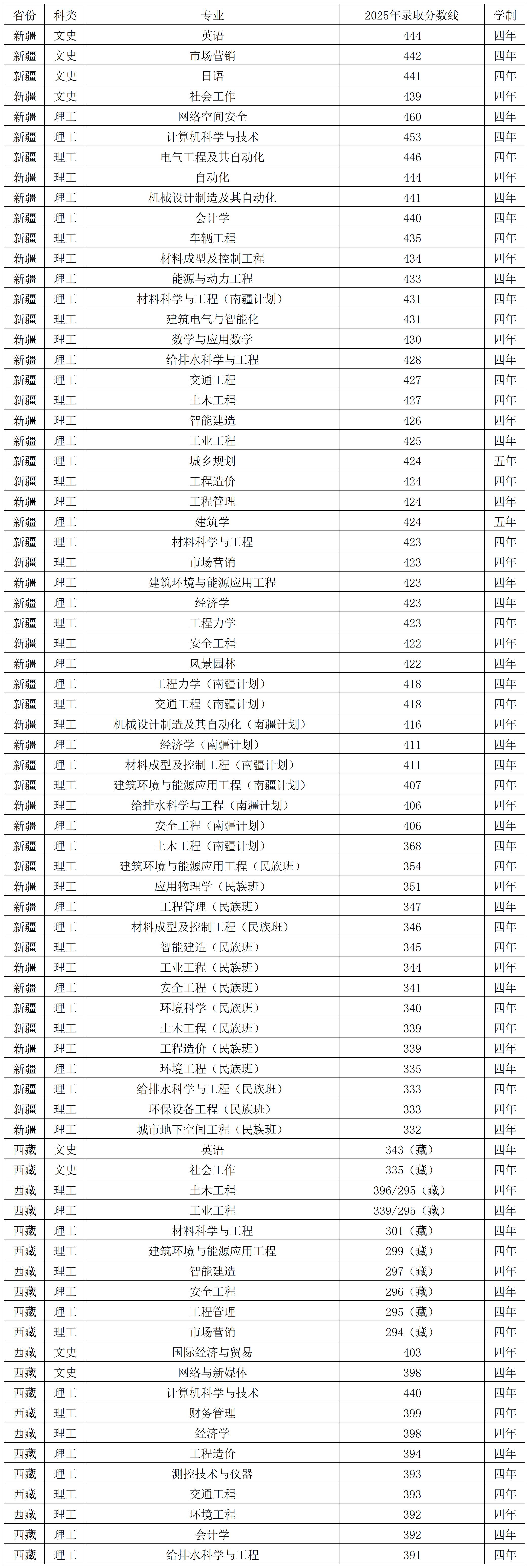 青岛理工大学2025年在西藏、新疆各专业录取分数线