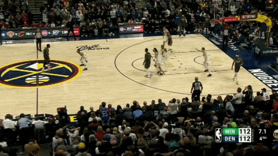 24-25赛季季后赛,森林狼对阵掘金的比赛,打到最后时刻双方112-112,爱德华兹logo标处持球,阿隆-戈登及时上提包夹爱德华,放空兰德尔,结果兰德尔三分偏出,