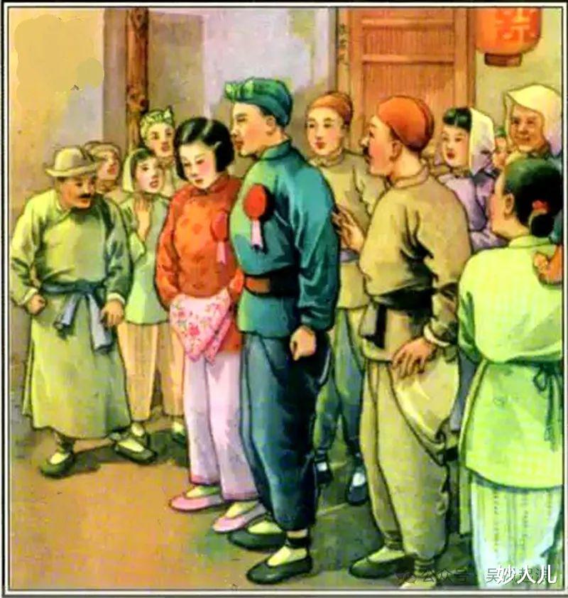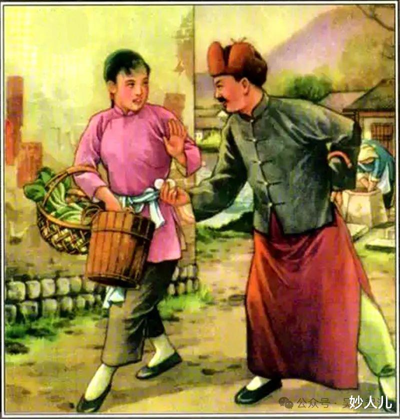 另外,由于太过写实,正面人物难免显得猥琐、狼狈。第2、第5、第6幅里面的王贵,都让读者感觉,屈服于坏人的淫威,畏畏缩缩,敢怒不敢言,自己的父亲被恶霸打死,王贵却长跪地上,并拢双手向恶霸祈求,大长了剥削阶级的威风。尤其是第1幅里的那个被逼租的农民,简直就是鲁迅笔下的阿Q,实在有损我们广大贫下中农的形象。第8幅,笔者觉得,李香香怎么也不能构思成和坏人缠斗扭打一起,给读者一种泼妇的形象。哪怕就是横眉怒目,举手斥责,也不能让她轻易上手。另一方面,由于太过强调近景,特显视觉冲击,反而使得画面有局促之感,这和当时不少画家所犯的毛病一样,让读者感觉画面左右两边是被切了边的。